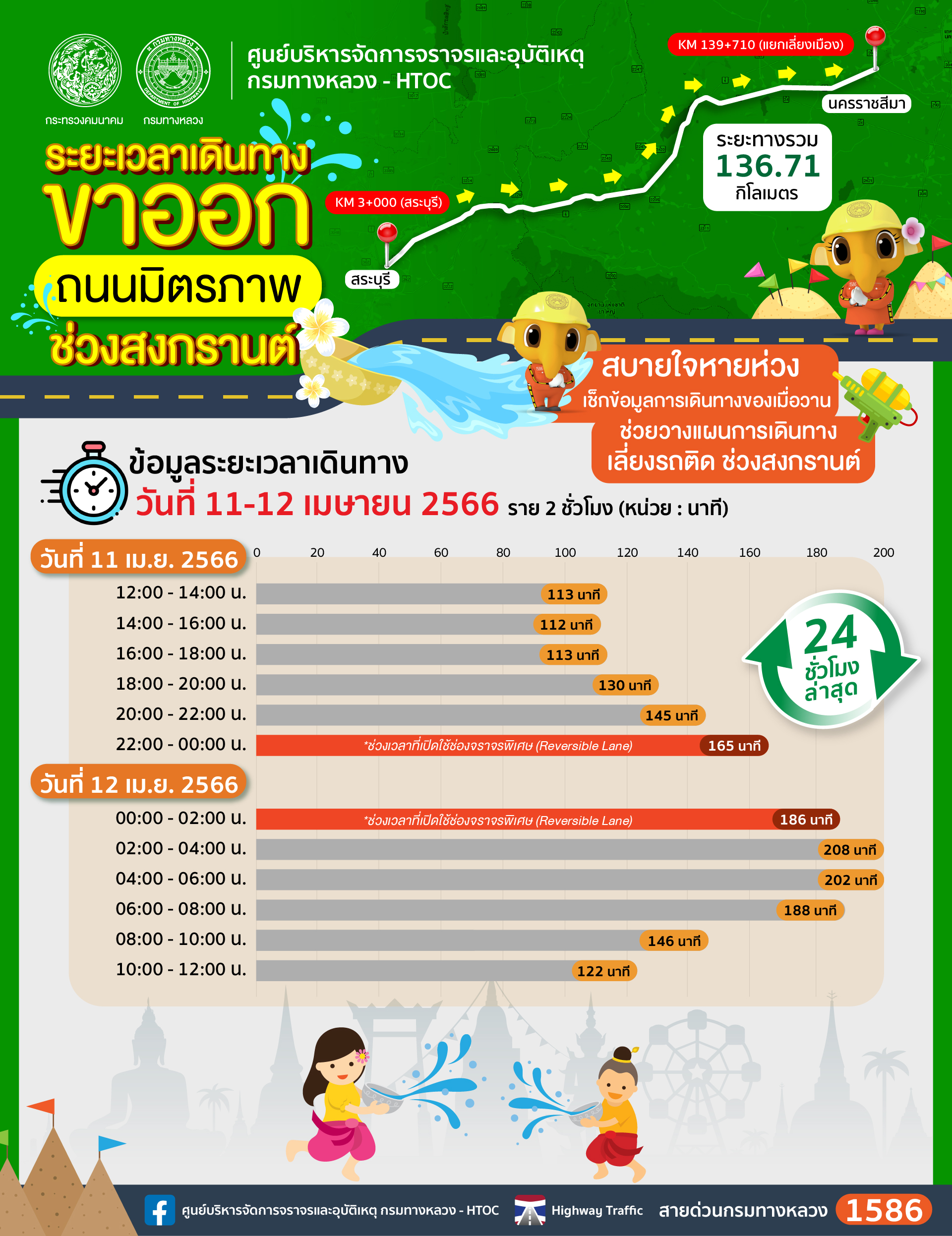 กรมทางหลวง พร้อมอำนวยความสะดวกและปลอดภัยรองรับการเดินทางบนทางหลวงในช่วงวันหยุดยาว 4 – 7 พ.ค. 66 สอบถามสภาพจราจรโทร 1586