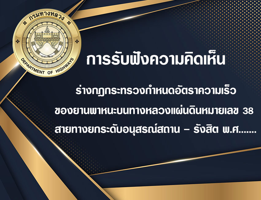 ขอเชิญประชาชนร่วมแสดงความคิดเห็นเกี่ยวกับร่างกฎกระทรวงกำหนดอัตราความเร็วของยานพาหนะบนทางหลวงแผ่นดินหมายเลข 38 สายทางยกระดับอนุสรณ์สถาน - รังสิต พ.ศ.......