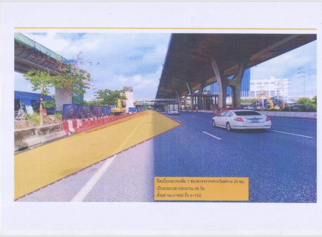 ประชาสัมพันธ์ปิดเบี่ยงจราจร บนทางหลวงหมายเลข 34 (ถนนเทพรัตน) เพื่อดำเนินงานก่อสร้างโครงการรถไฟฟ้าสายสีเหลือง ช่วง ลาดพร้าว – สำโรง