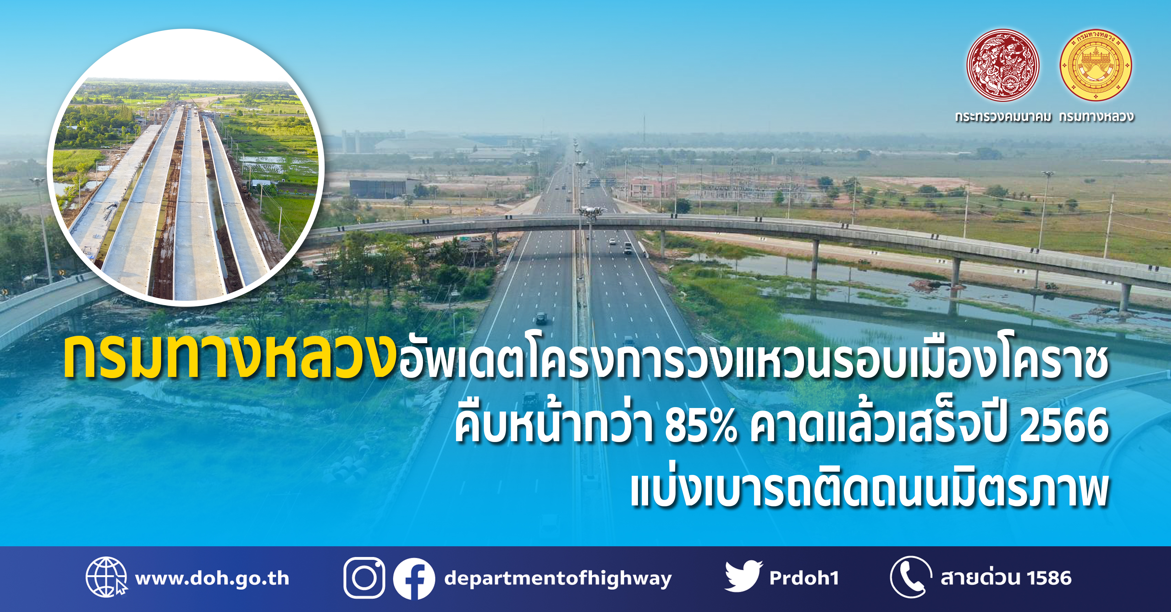 กรมทางหลวงอัพเดตโครงการวงแหวนรอบเมืองโคราช คืบหน้ากว่า 85% คาดแล้วเสร็จปี 2566 แบ่งเบารถติดถนนมิตรภาพ