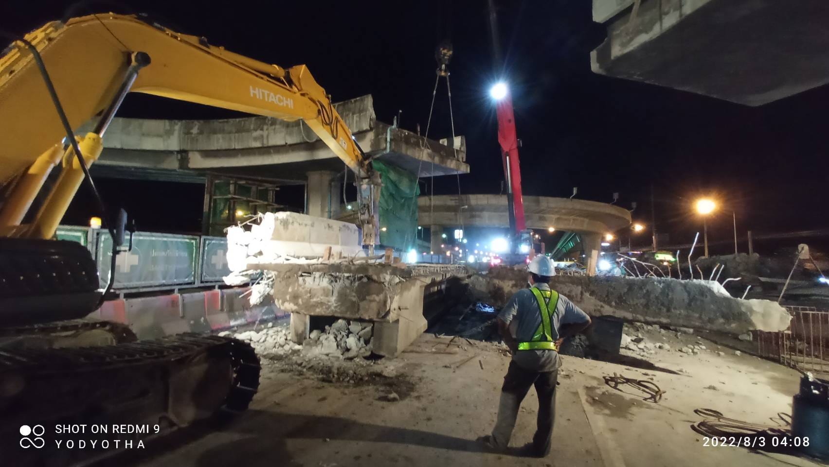 กรมทางหลวง เร่งรื้อแผงกั้นคอนกรีตที่ชำรุดบนสะพานข้ามถนนพระราม 2 (มหาชัยเมืองใหม่) แล้วเสร็จ พร้อมเปิดการจราจรตามปกติเพื่ออำนวยความสะดวกปลอดภัยให้ประชาชน
