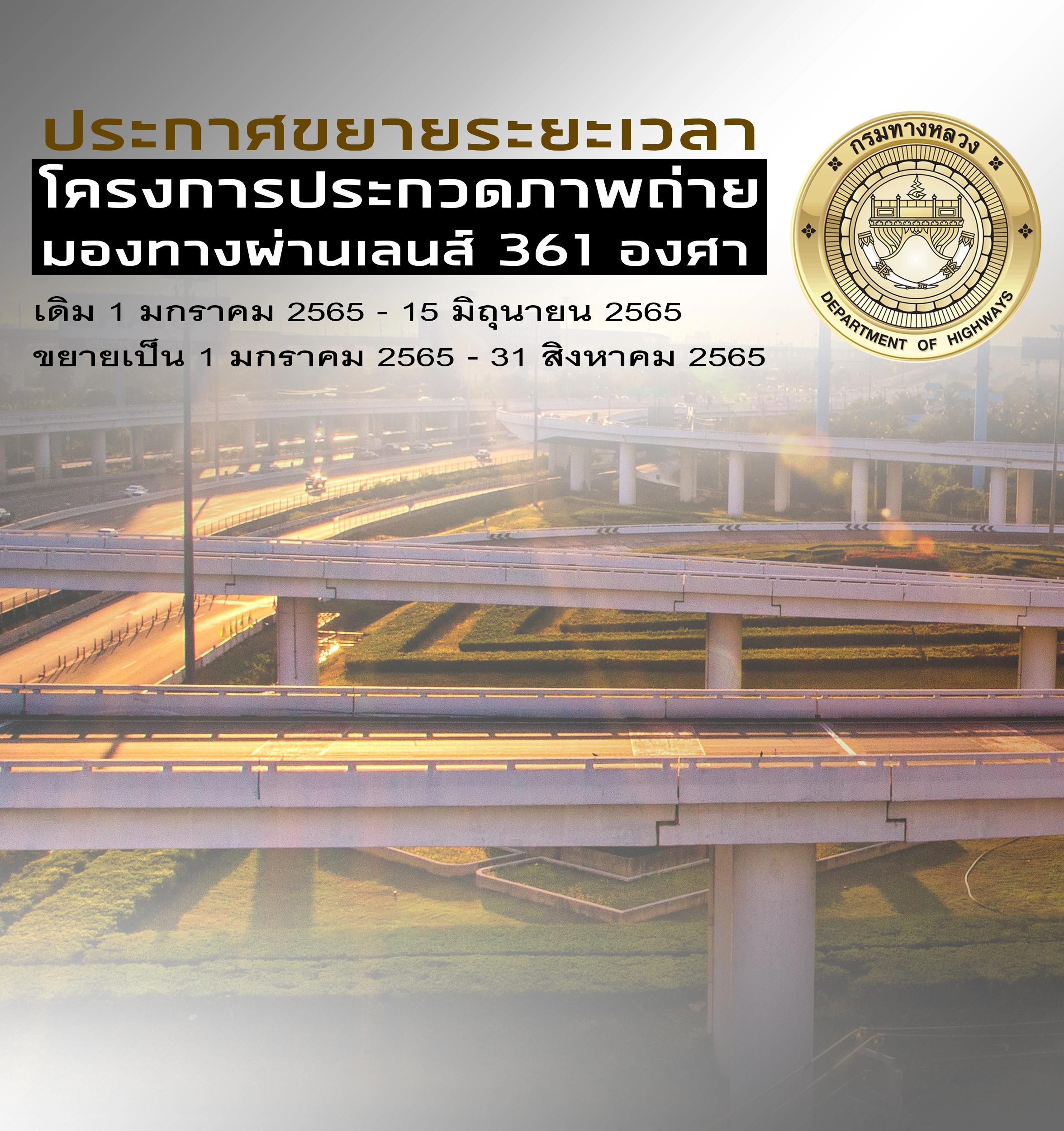 กรมทางหลวงขยายเวลาส่งผลงานประกวดภาพถ่าย ภายใต้หัวข้อ “มองทางผ่านเลนส์ 361 องศา”ชิงรางวัลกว่า230,000บาทพร้อมเกียรติบัตร