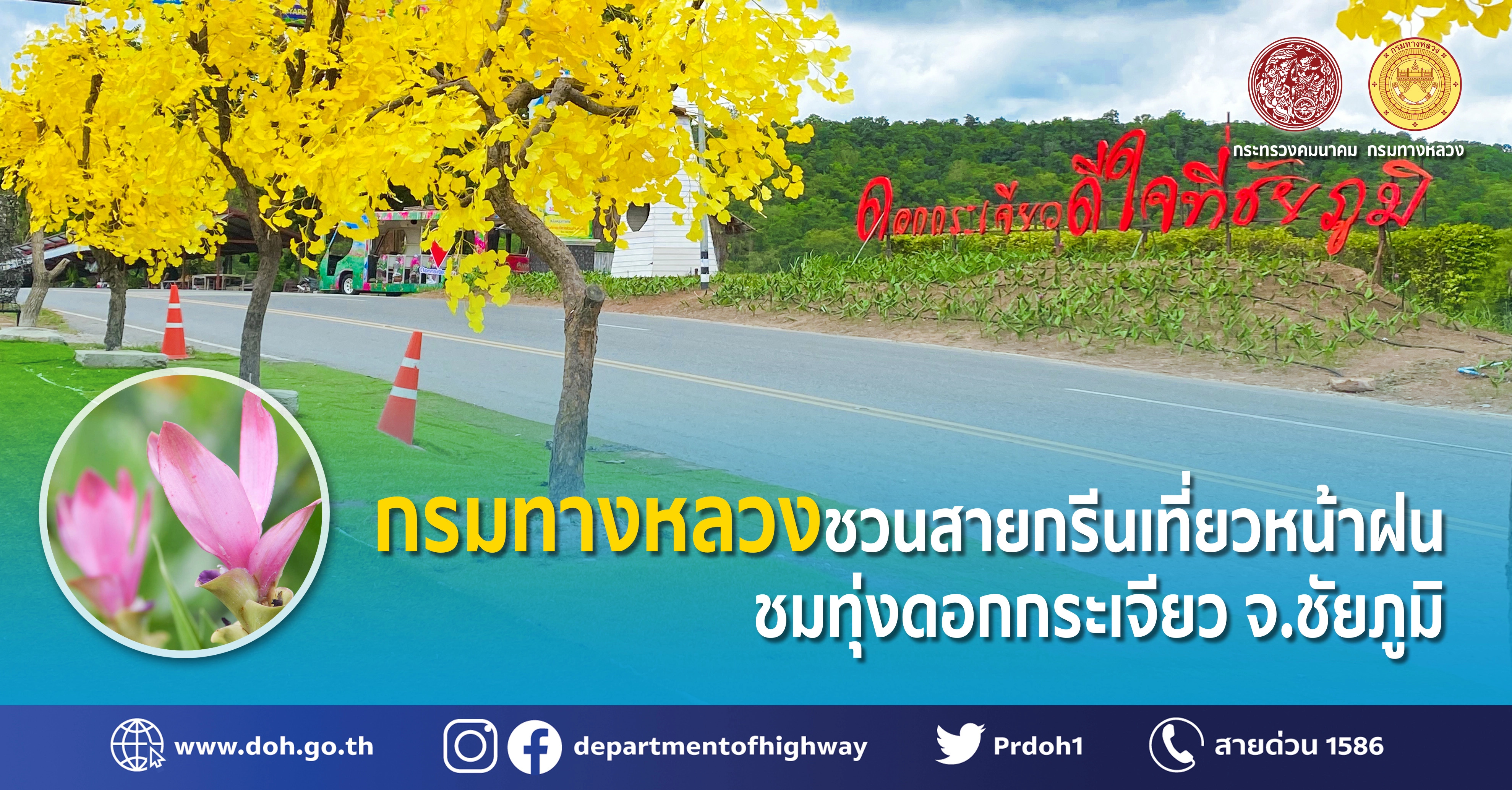 กรมทางหลวง ชวนสายกรีนเที่ยวหน้าฝน ชมทุ่งดอกกระเจียว จ.ชัยภูมิ