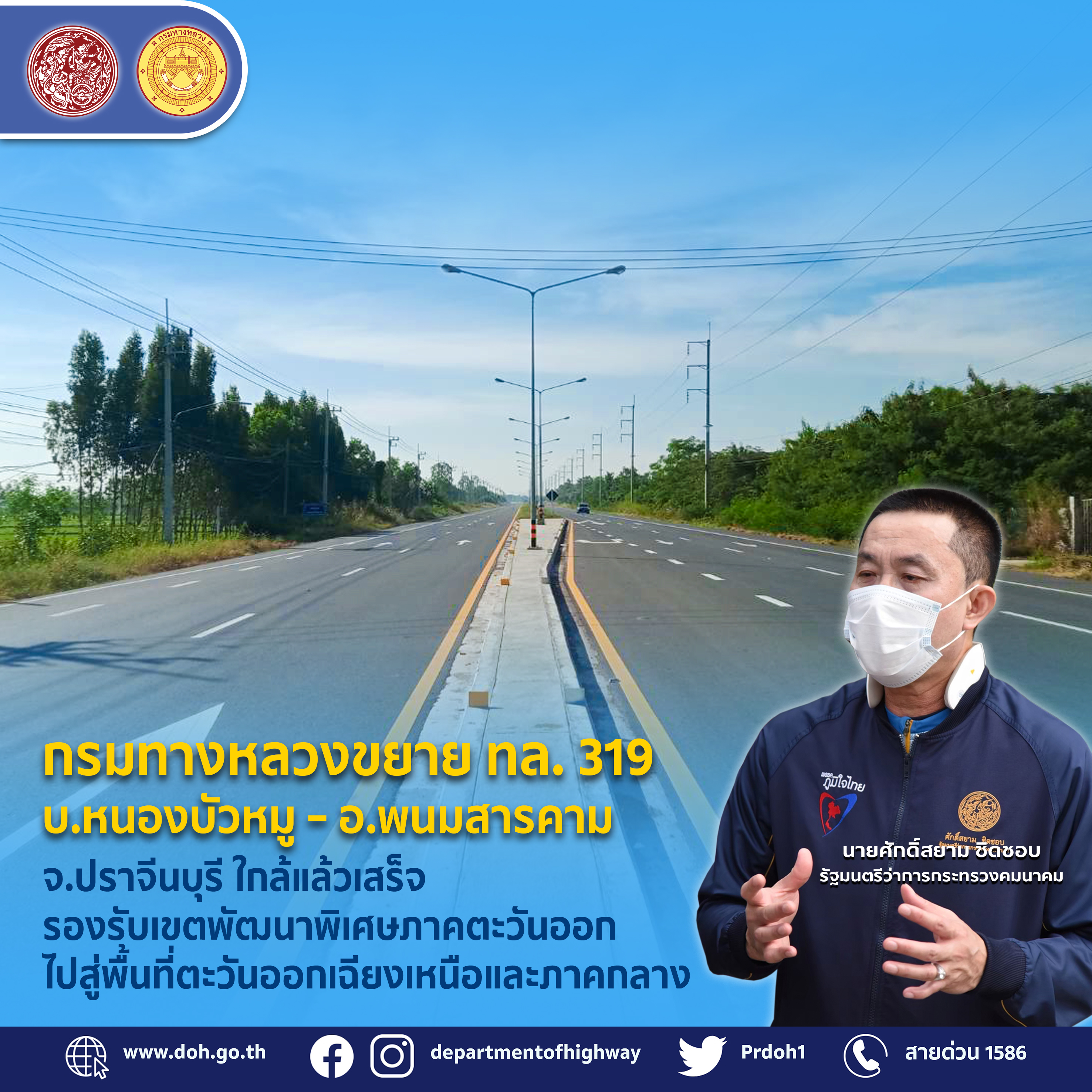 กรมทางหลวง ขยาย ทล.319 บ.หนองบัวหมู – อ.พนมสารคาม จ.ปราจีนบุรี ใกล้แล้วเสร็จ รองรับเขตพัฒนาเศรษฐกิจพิเศษภาคตะวันออกไปสู่พื้นที่ตะวันออกเฉียงเหนือและภาคกลาง