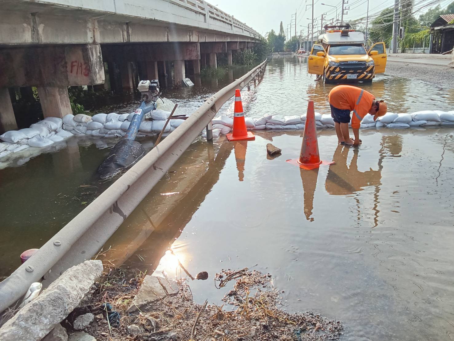 กรมทางหลวงเร่งปฏิบัติการฉุกเฉินบรรเทาผลกระทบจราจรบน ถ.พระราม 2 จากเหตุน้ำทะเลหนุนสูง พร้อมรับมือหากสถานการณ์ยังไม่ดีขึ้นช่วงสัปดาห์หน้า (ทล.35)