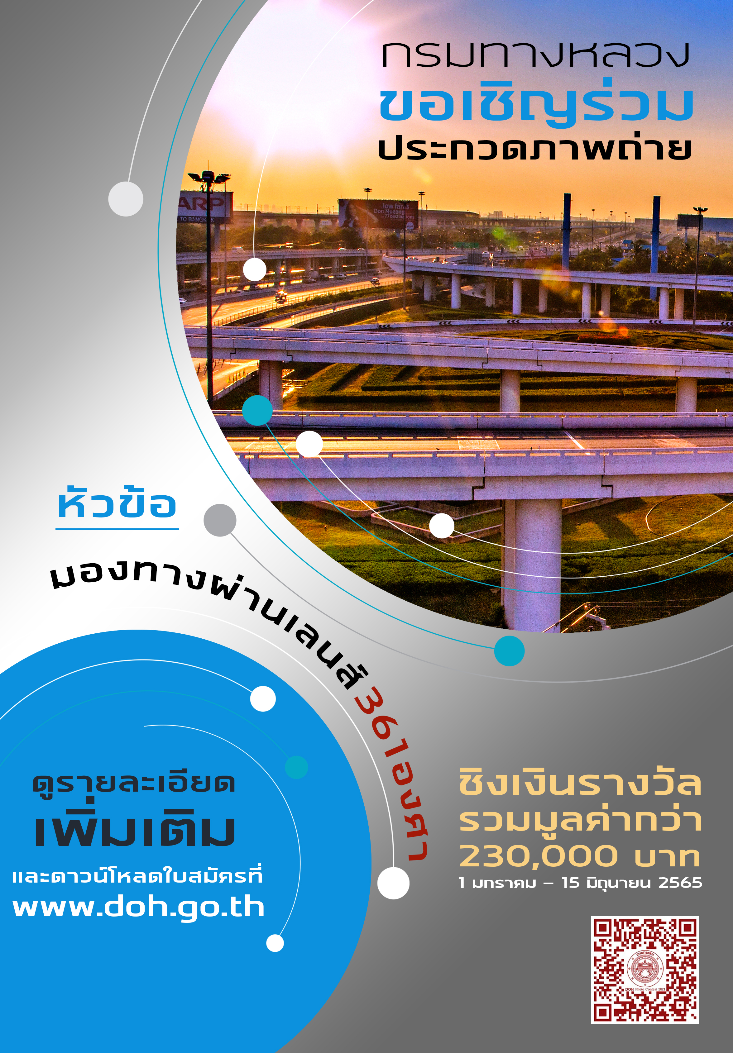กรมทางหลวงจัดประกวดภาพถ่ายภายใต้หัวข้อ “มองทางผ่านเลนส์ 361 องศา” ชิงรางวัลกว่า 230,000 บาทพร้อมเกียรติบัตร