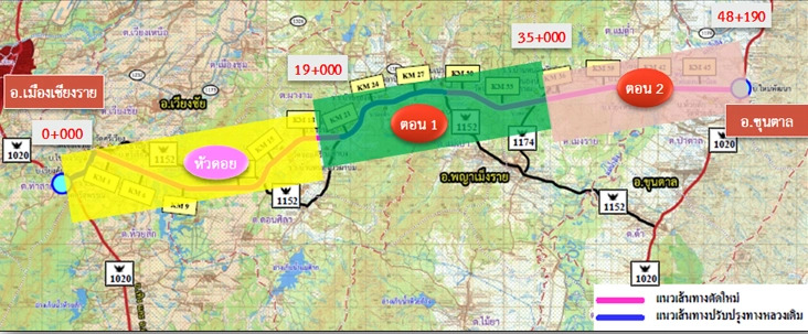 ทางหลวงสายนี้มีจุดเริ่มต้นโครงการที่ กม.0 ของทางหลวงหมายเลข 1152 บริเวณบ้านหัวดอย ต.ท่าสาย อ.เมืองเชียงราย จ.เชียงราย สิ้นสุดโครงการที่ กม.48 ของทางหลวงหมายเลข 1020 บริเวณบ้านใหม่พัฒนา อ.ขุนตาล จ.เชียงราย ลักษณะการก่อสร้างเป็นมาตรฐานทางพิเศษ 4 ช่องจราจร ตลอดแนวเส้นทาง ประกอบด้วย ช่องจราจรกว้าง 3.5 เมตร ข้างละ 2 ช่องทาง ไหล่ทางด้านในกว้าง 1.5 เมตร ไหล่ทางด้านนอกกว้าง 2.5 เมตร เกาะกลางแบบกดเป็นร่อง กว้าง 9.1 เมตร โดยบางช่วงใช้เกาะกลางแบบยก กว้าง 5.1 เมตร พร้อมระบบไฟฟ้าแสงสว่าง งบประมาณ 2,415,263,091 บาท
