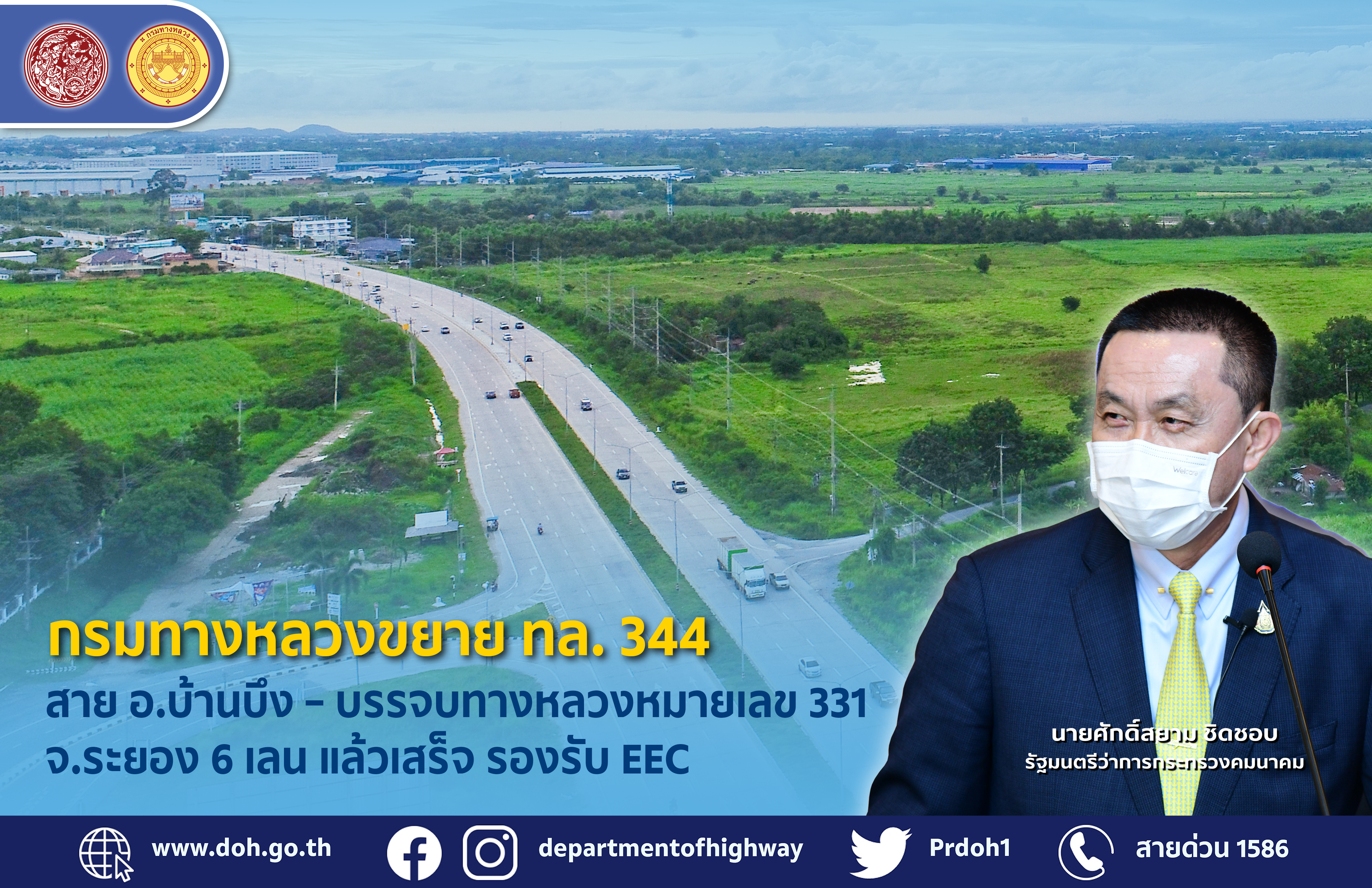 กรมทางหลวง โดย สำนักก่อสร้างทางที่ 2 ดำเนินการโครงการก่อสร้างขยายทางหลวงหมายเลข 344 สาย อ.บ้านบึง – บรรจบทางหลวงหมายเลข 331 (หนองปรือ) รวมสะพานข้ามแยกหนองชาก แล้วเสร็จ ระยะทางยาวประมาณ 12.3 กิโลเมตร ในพื้นที่จังหวัดชลบุรี ตามนโยบายของ นายศักดิ์สยาม ชิดชอบ รัฐมนตรีว่าการกระทรวงคมนาคม ที่ต้องการพัฒนาทางหลวงรองรับระเบียงเศรษฐกิจภาคตะวันออก