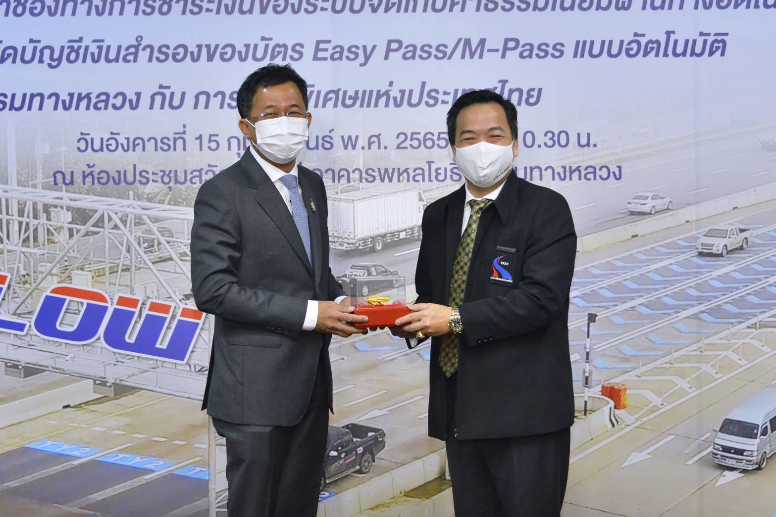 M-Pass แบบอัตโนมัติ ระหว่าง กรมทางหลวง โดย นายสราวุธ ทรงศิวิไล อธิบดีกรมทางหลวง กับ การทางพิเศษแห่งประเทศไทย โดย นายสุรเชษฐ์ เหล่าพูลสุข ผู้ว่าการการทางพิเศษแห่งประเทศไทย เมื่อวันอังคารที่ 15 กุมภาพันธ์ 2565 เวลา 10.30 – 11.00 น. ณ ห้องประชุมสวัสดิ์วรวิถี อาคารพหลโยธิน กรมทางหลวง