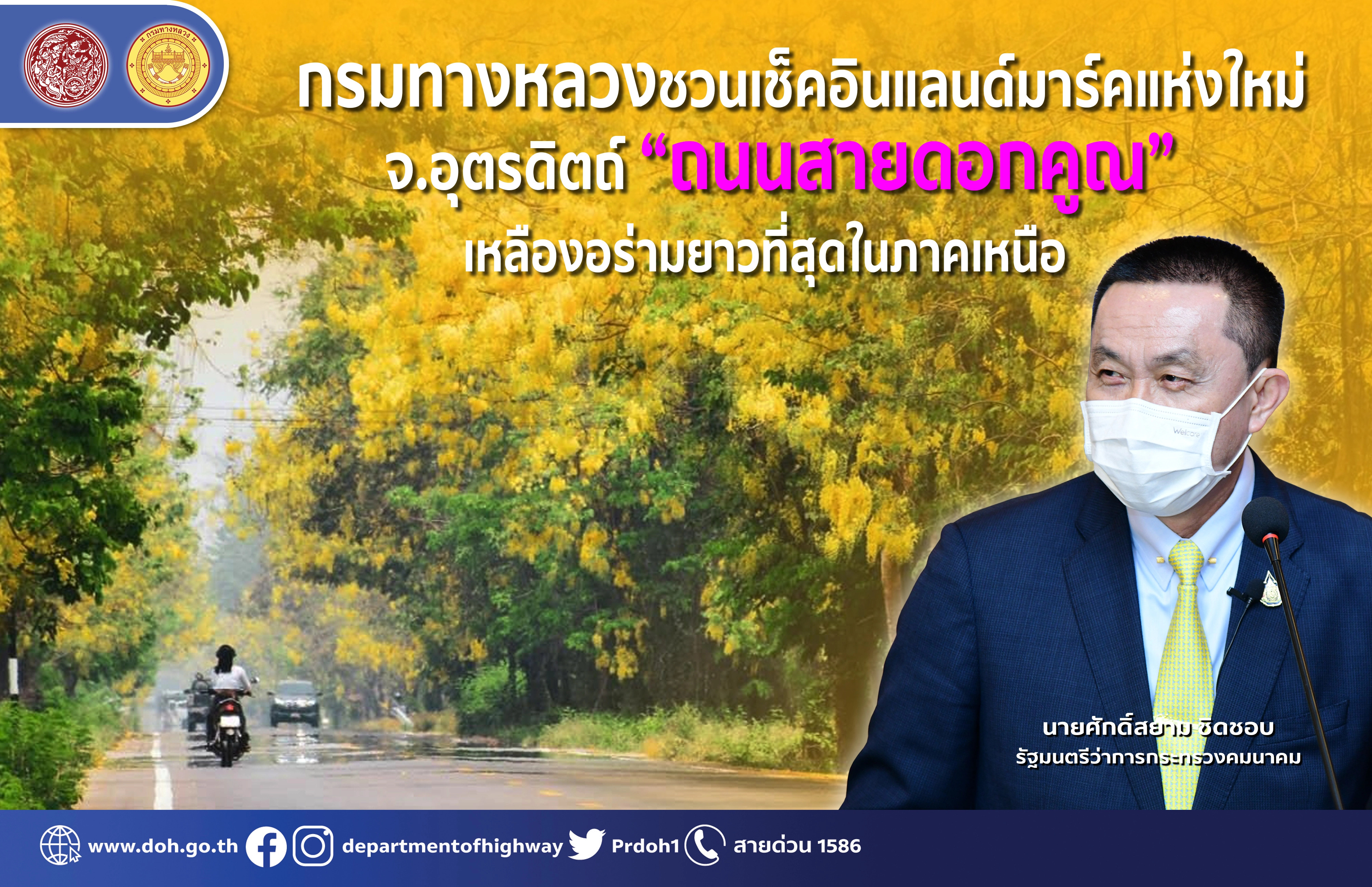 ข้อมูลข่าว : กรมทางหลวงชวนเช็กอินแลนด์มาร์คแห่งใหม่ จ.อุตรดิตถ์ “ถนนสายดอกคูณ” เหลืองอร่ามยาวที่สุดในภาคเหนือ
