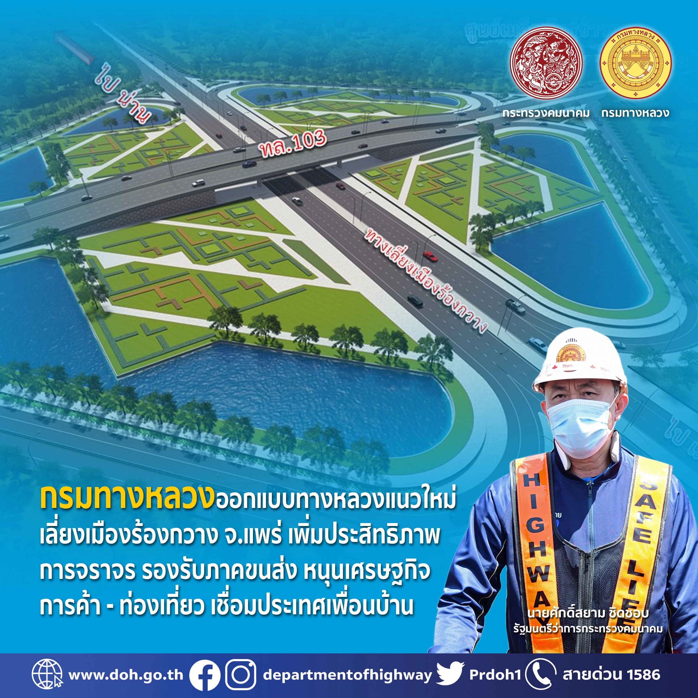 กรมทางหลวงออกแบบทางหลวงแนวใหม่เลี่ยงเมืองร้องกวาง ยกระดับความปลอดภัยด้านคมนาคม เพิ่มประสิทธิภาพการจราจร รองรับภาคขนส่ง หนุนเศรษฐกิจการค้า-ท่องเที่ยวเชื่อมประเทศเพื่อนบ้าน