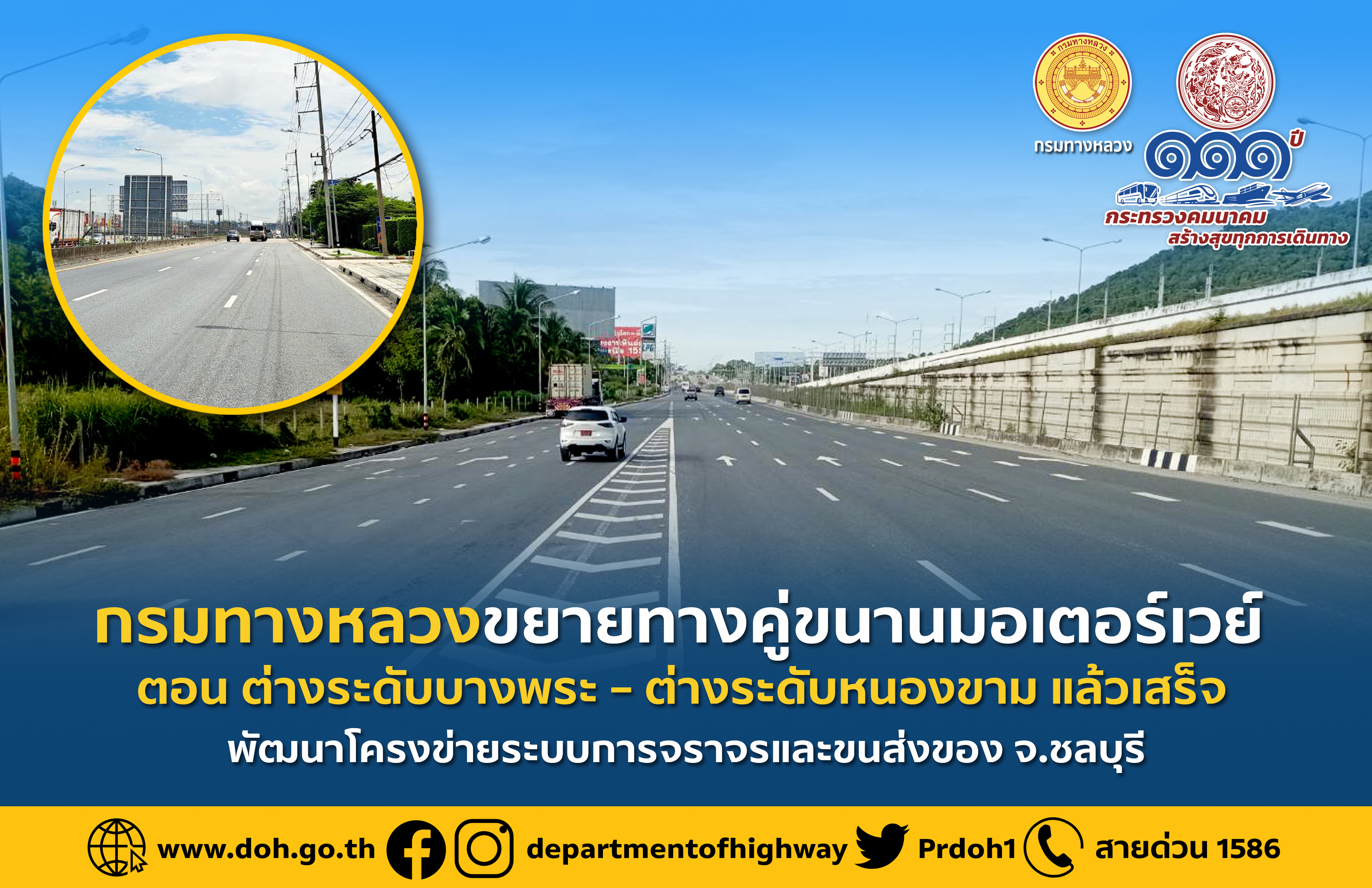 กรมทางหลวงขอความร่วมมือผู้ใช้ทางปฏิบัติตาม “ชีวิตวิถีใหม่ ขับขี่อย่างปลอดภัย ไร้อุบัติเหตุ” ขับขี่ด้วยความระมัดระวังเพื่อความปลอดภัยของตัวท่านและผู้ร่วมทาง ประชาชนสามารถสอบถามเส้นทางการเดินทางได้ที่ สายด่วนกรมทางหลวง โทร 1586 (โทรฟรีทุกเครือข่ายตลอด 24 ชั่วโมง)