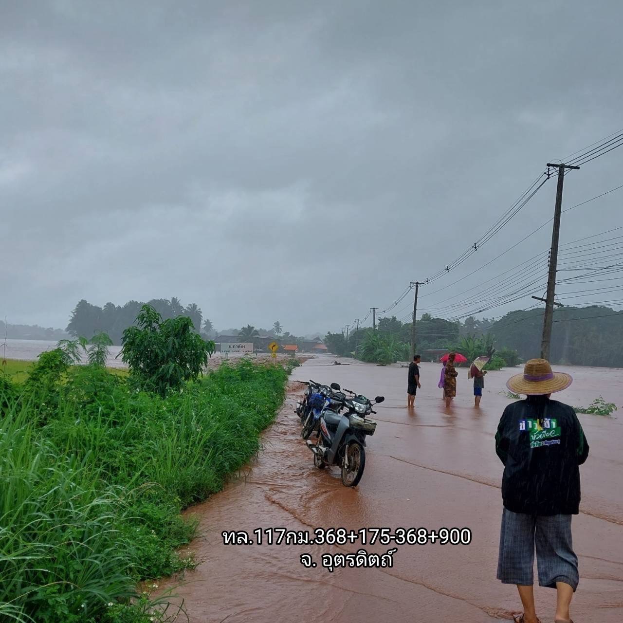 พร้อมกันนี้กรมทางหลวงได้ทำการสรุปสถานการณ์อุทกภัย ประจำวันที่ 9 ตุลาคม 2566 เวลา 16.00 น. พบทางหลวงถูกน้ำท่วมในพื้นที่ 9 จังหวัด ได้แก่ จังหวัดอุบลราชธานี, จังหวัดขอนแก่น, จังหวัดหนองบัวลำภู, จังหวัดมหาสารคาม, จังหวัดกาฬสินธุ์, จังหวัดยโสธร, จังหวัดอุตรดิตถ์, จังหวัดแพร่ และจังหวัดเชียงใหม่ จำนวน 16 สายทาง 23 แห่ง ที่การจราจรผ่านไม่ได้ 4 แห่ง ในจังหวัดอุตรดิตถ์ ดังนี้