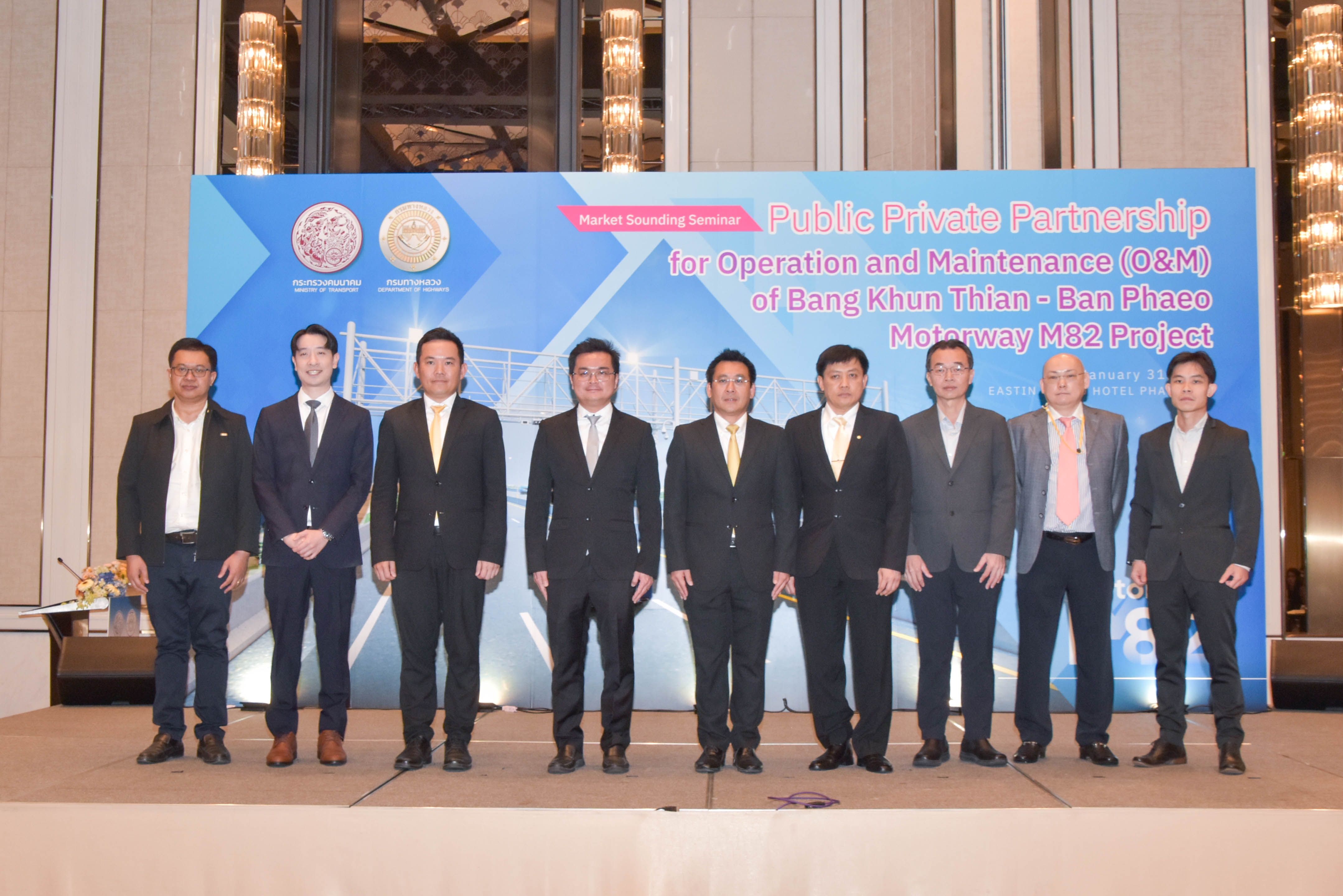วันนี้ (31 มกราคม 2567) เวลา 08.30 น. ณ โรงแรม อีสติน แกรนด์ พญาไท กรุงเทพฯ กรมทางหลวงจัดเวทีรับฟังความคิดเห็นของภาคเอกชน (Market Sounding) โครงการทางหลวงพิเศษหมายเลข 82 สายทางยกระดับบางขุนเทียน - บ้านแพ้ว สำหรับการให้เอกชนร่วมลงทุนในการดำเนินงานและบำรุงรักษา (O&M) โดยมีนายปิยพงษ์ จิวัฒนกุลไพศาล รองอธิบดีกรมทางหลวง ฝ่ายวิชาการ เป็นประธาน พร้อมด้วยคณะผู้บริหารกรมทางหลวง กลุ่มบริษัทที่ปรึกษา หน่วยงานภาครัฐและเอกชน สถาบันการเงิน สถานเอกอัครราชทูต หอการค้าต่างประเทศ ตลอดจนสื่อมวลชน เข้าร่วมงานประมาณ 200 คน