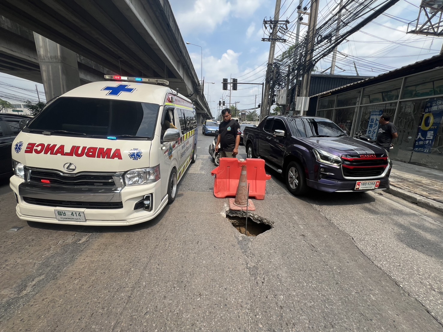 นายสราวุธ ทรงศิวิไล อธิบดีกรมทางหลวง กล่าวถึง กรณีเหตุถนนแจ้งวัฒนะทรุดตัว ในพื้นที่ ต.คลองเกลือ อ.ปากเกร็ด จ.นนทบุรี ส่งผลให้มีการปิดเบี่ยงการจราจรจำนวน 1 ช่องทาง ประชาชนไม่ได้รับความสะดวกในการเดินทาง ซึ่งกรมทางหลวงขออภัยในความไม่สะดวกในการเดินทางของประชนเป็นอย่างยิ่ง กรมทางหลวงได้รับทราบและสั่งการให้เจ้าหน้าที่เร่งลงพื้นที่ตรวจสอบ หาสาเหตุ พร้อมซ่อมแซมเพื่อให้ประชาชนสามารถสัญจรได้อย่างสะดวกและปลอดภัยโดยเร็ว สำหรับเหตุดังกล่าวเกิดขึ้นในวันนี้ (10 พฤษภาคม 2567) เวลา 14.30 น. บนทางหลวงหมายเลข 304 หรือถนนแจ้งวัฒนะ บริเวณ กม.ที่ 5+600 (ด้านขวาทาง) ในพื้นที่ อ.ปากเกร็ด จ.นนทบุรี โดยได้สั่งการให้ นายศุภโชค มีอำพล ผู้อำนวยการสำนักงานทางหลวงที่ 13 (กรุงเทพ) นายทวีศักดิ์ รุจิจรรยาวัฒน์ ผู้อำนวยการสำนักก่อสร้างสะพาน นายชัยวิทย์ ศิริตันตยาภรณ์ ผู้อำนวยการแขวงทางหลวงนนทบุรี พร้อมด้วยทีมวิศวกรกรมทางหลวง และเจ้าหน้าที่ที่เกี่ยวข้องลงพื้นที่ตรวจสอบ พบว่า จุดเกิดเหตุเป็นถนนผิวจราจรชนิดคอนกรีตทรุดตัวเป็นหลุมที่มีขนาดความกว้าง 40 เซนติเมตร ความยาว 90 เซนติเมตร และความลึก 80 เซนติเมตร มีลักษณะการยุบตัวแบบเฉพาะจุด โดยแขวงทางหลวงนนทบุรี และศูนย์สร้างและบูรณะสะพานที่3 (ปทุมธานี) ได้ร่วมกันดำเนินการซ่อมแซมโดยการใช้วัสดุทดแทนที่ได้มาตรฐานอุดในพื้นที่ที่เกิดการยุบตัว พร้อมเทปิดทับด้วยปูนเกร้าท์ซีเมนต์ โดยระหว่างรอปูนแข็งตัว ปิดทับด้วยแผ่นเหล็กเพื่อเปิดการจราจร ซึ่งขณะนี้ได้ดำเนินการแล้วเสร็จ คาดว่าจะสามารถเปิดรถวิ่งเป็นปกติทุกช่องจราจรในเวลา 20.00 น.