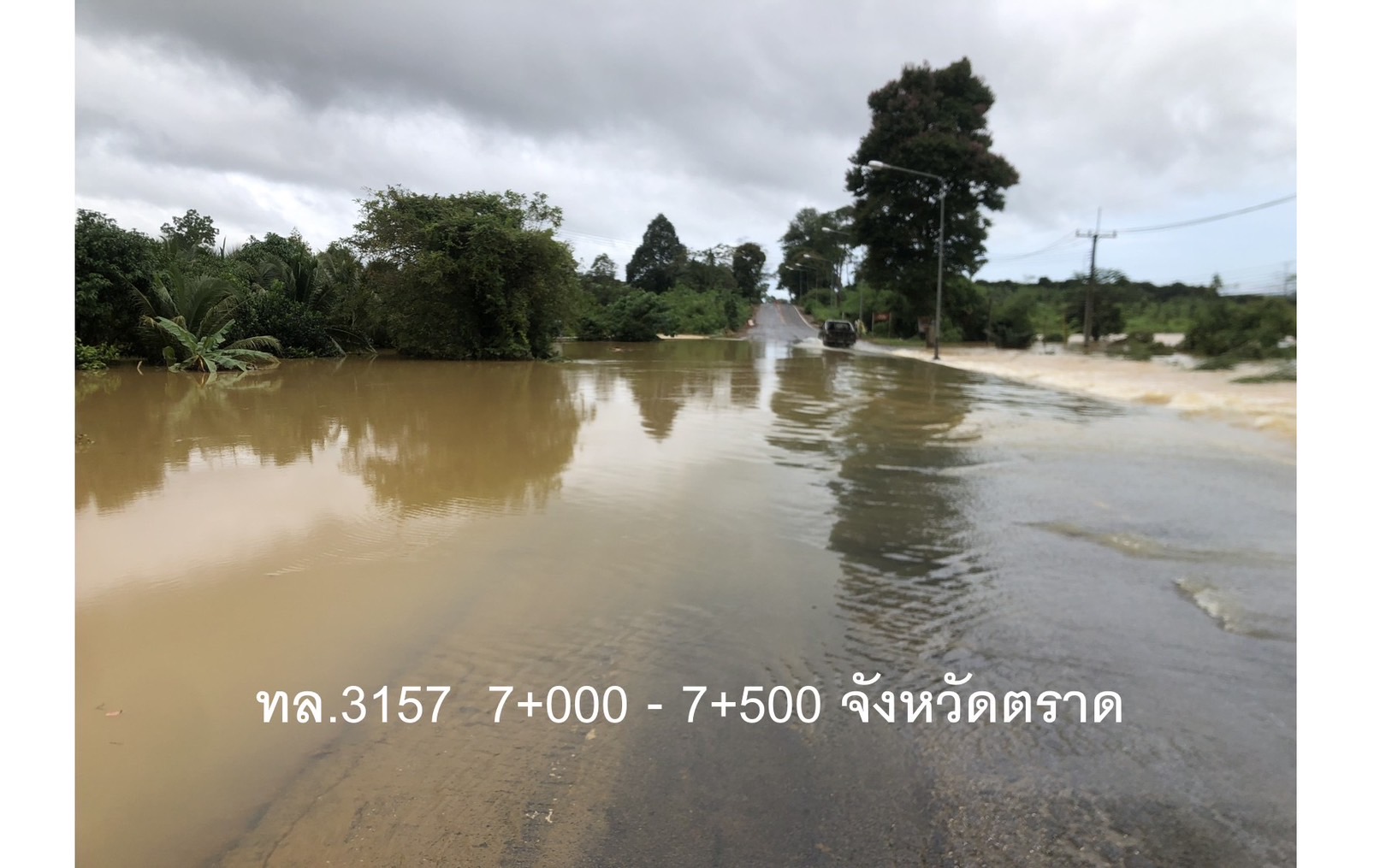 กรมทางหลวง อัปเดตเส้นทางน้ำท่วมพื้นที่ จ.ตราด ผ่านไม่ได้ 1 แห่ง คือ ทล.3388 สายบ้านโป่ง - บ่อไร่ อ.บ่อสมิง จ.ตราด พร้อมจัดเจ้าหน้าที่ช่วยเหลือประชาชน 24 ชม.