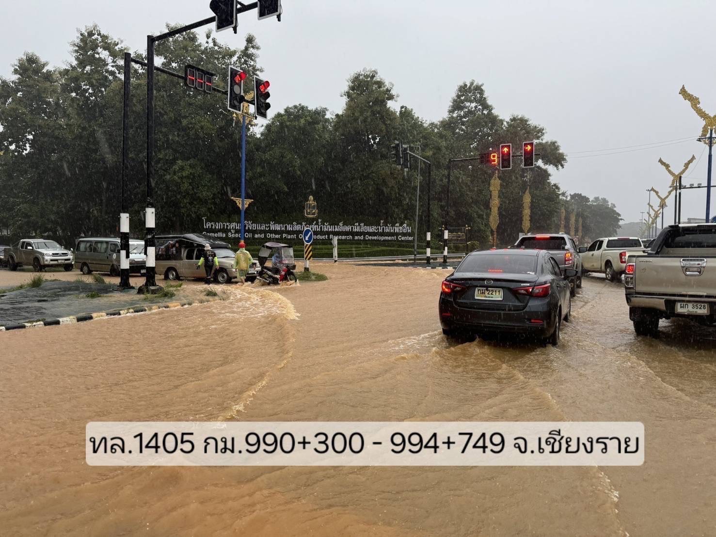 4.ทางหลวงหมายเลข 1290 อ.เชียงแสน แม่สาย - กิ่วกาญจน์ กม.ที่ 20+000 – 20+600 ระดับน้ำ 40 ซม. การจราจรผ่านไม่ได้