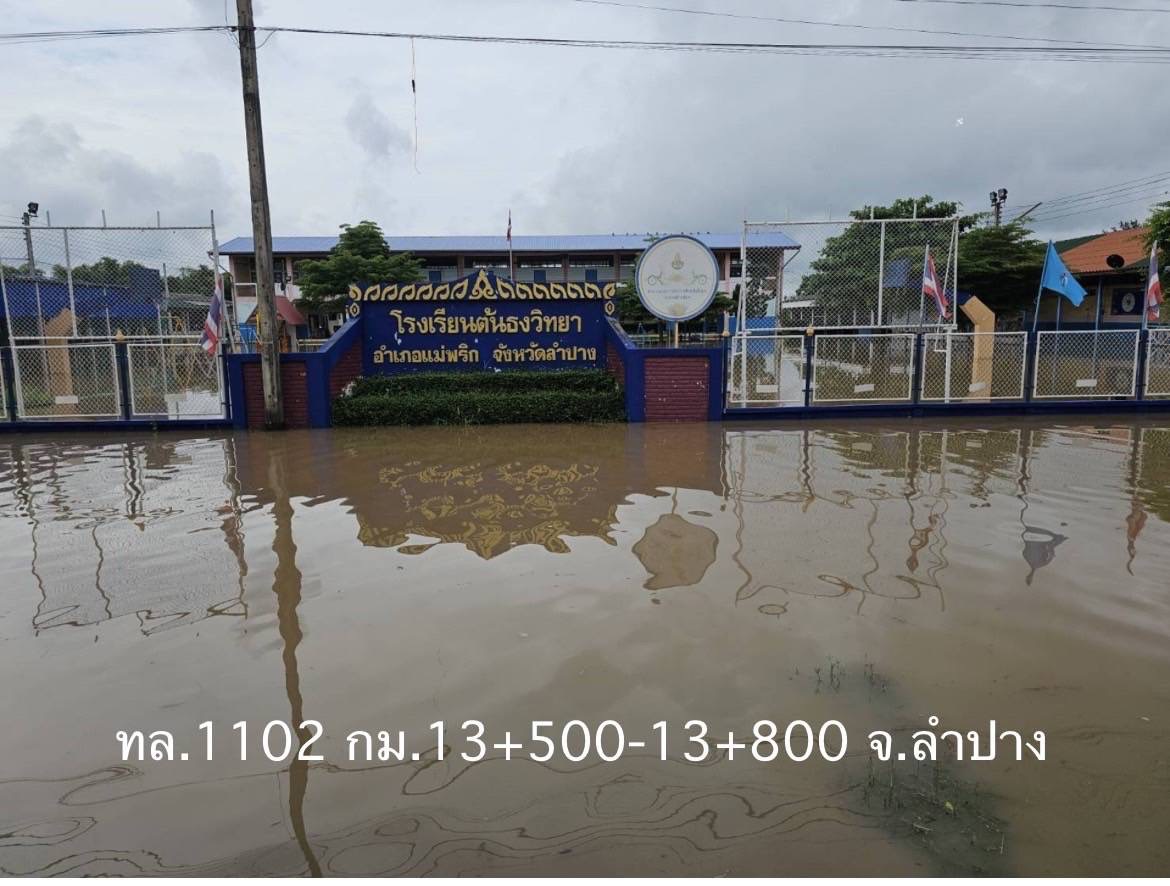 1. ทางหลวงหมายเลข 1102 อ.แม่พริก สายพระบาท - บ้านเหล่า กม.ที่ 13+500 – 13+800 ระดับน้ำ 40 ซม. การจราจรผ่านไม่ได้ ไม่มีเส้นทางเลี่ยง