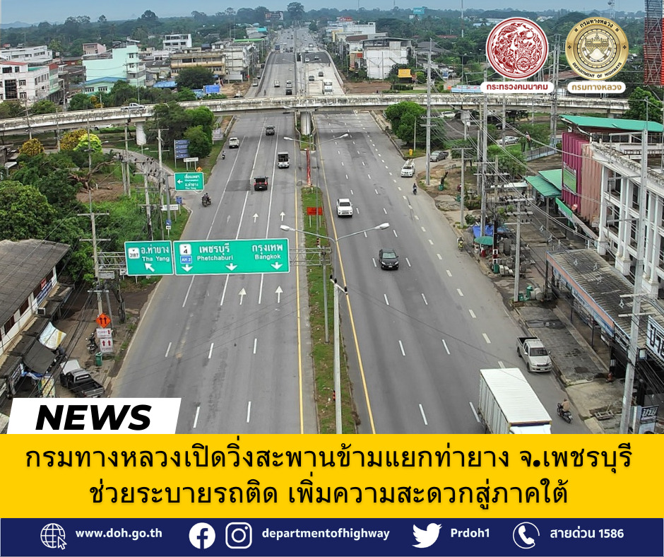 ข่าวดี! กรมทางหลวงเปิดวิ่งสะพานข้ามแยกท่ายาง จ.เพชรบุรี ช่วยระบายรถติด เพิ่มความสะดวกสู่ภาคใต้