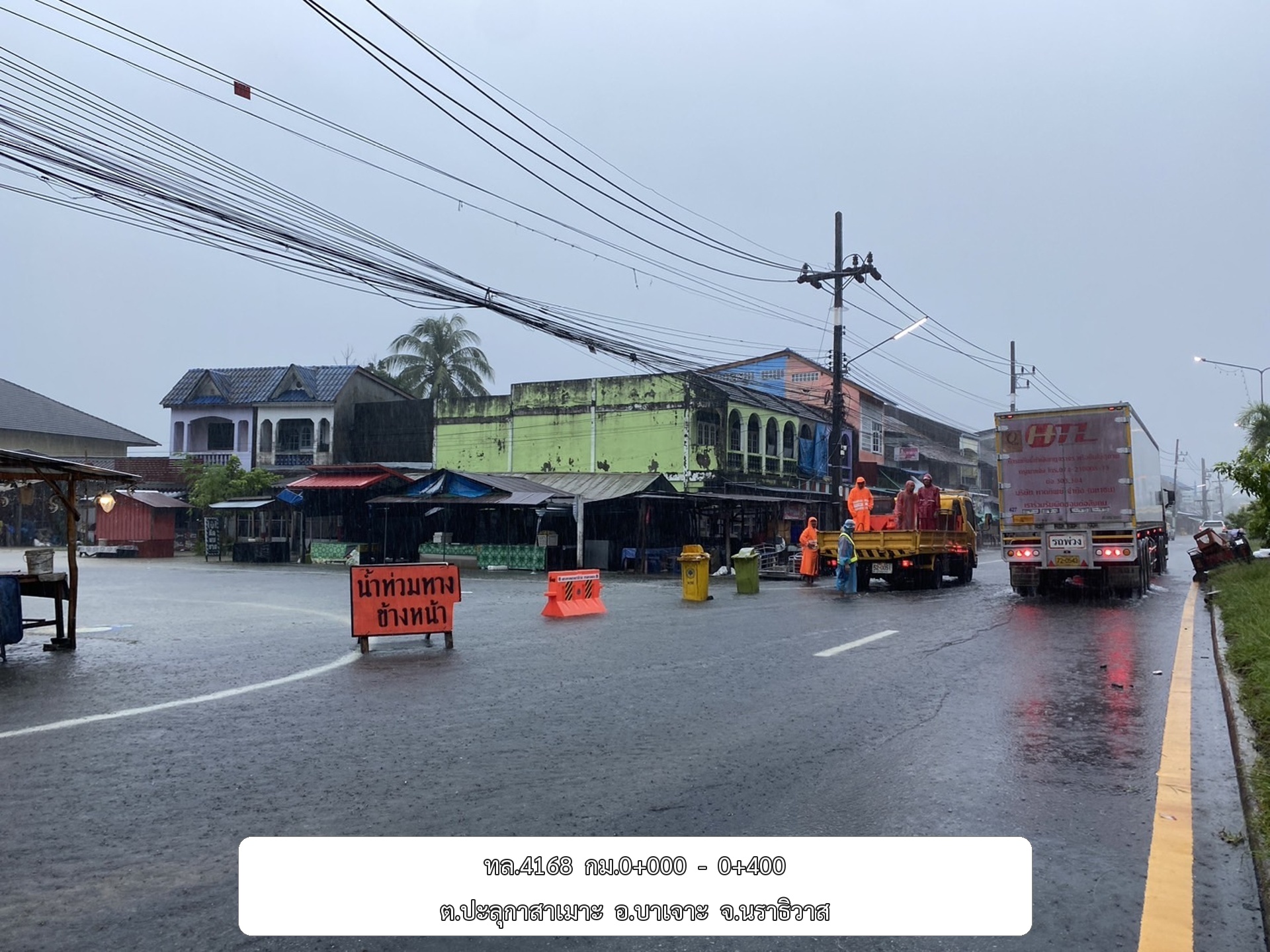 •ทล.42 นาจวก – ดอนยาง ช่วง กม.ที่ 78+800 - 79+200 อ.โคกโพธิ์ จ.ปัตตานี ระดับน้ำ 15 ซม.