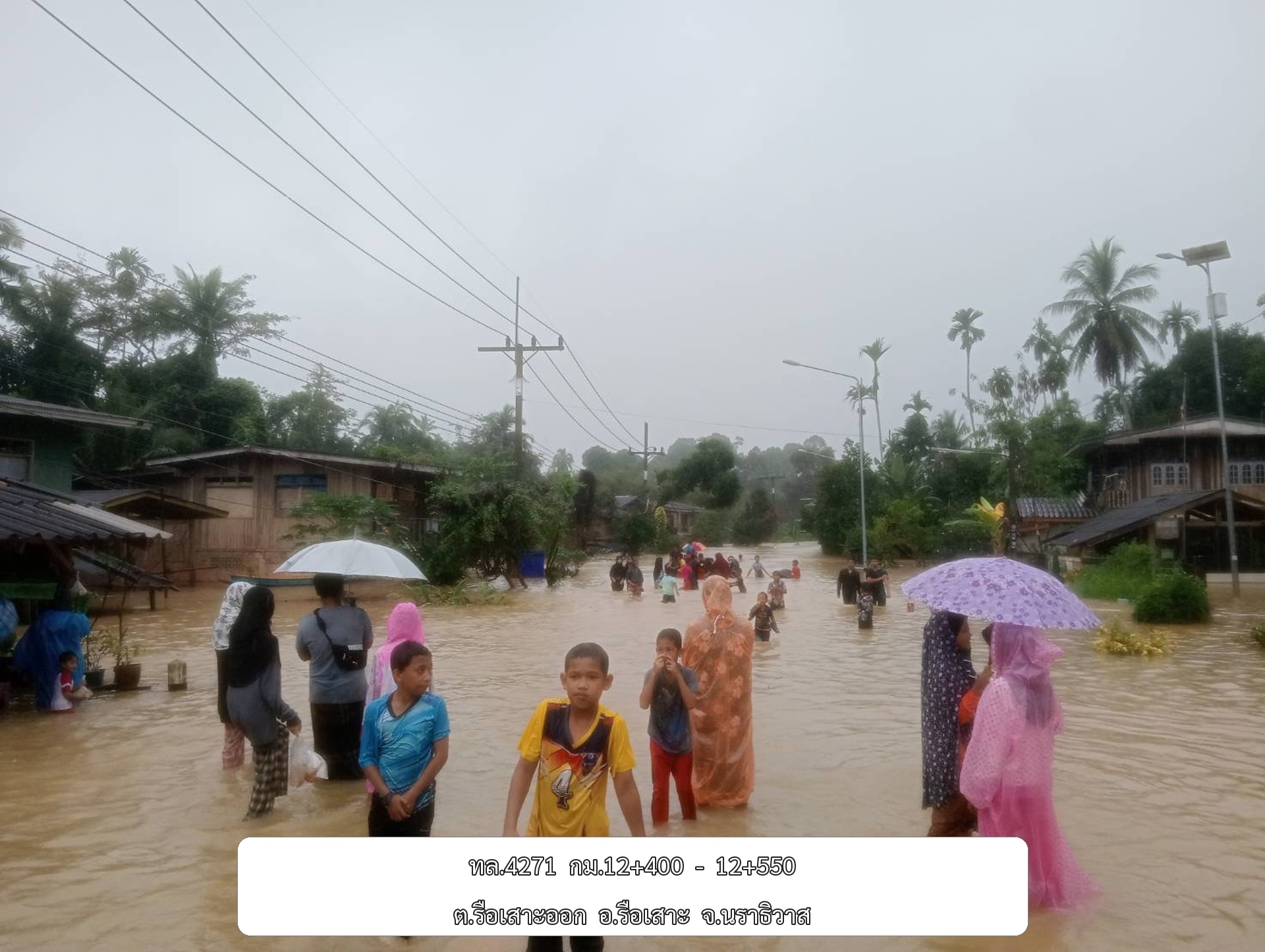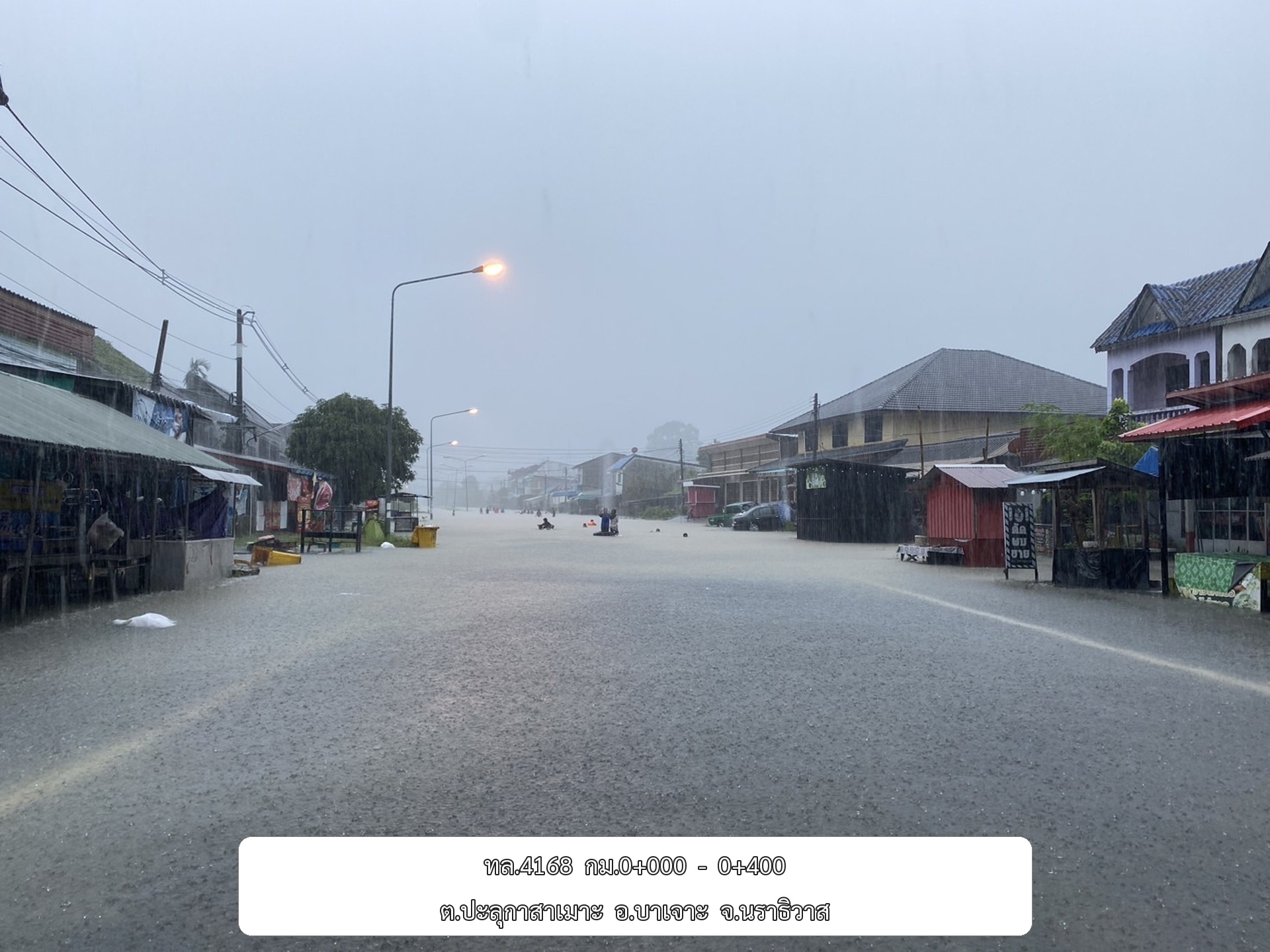 •ทล.4084 นราธิวาส – สะปอม กม.ที่ 8+430 - 8+530 อ.เมือง จ.นราธิวาส ระดับน้ำ 20 ซม.