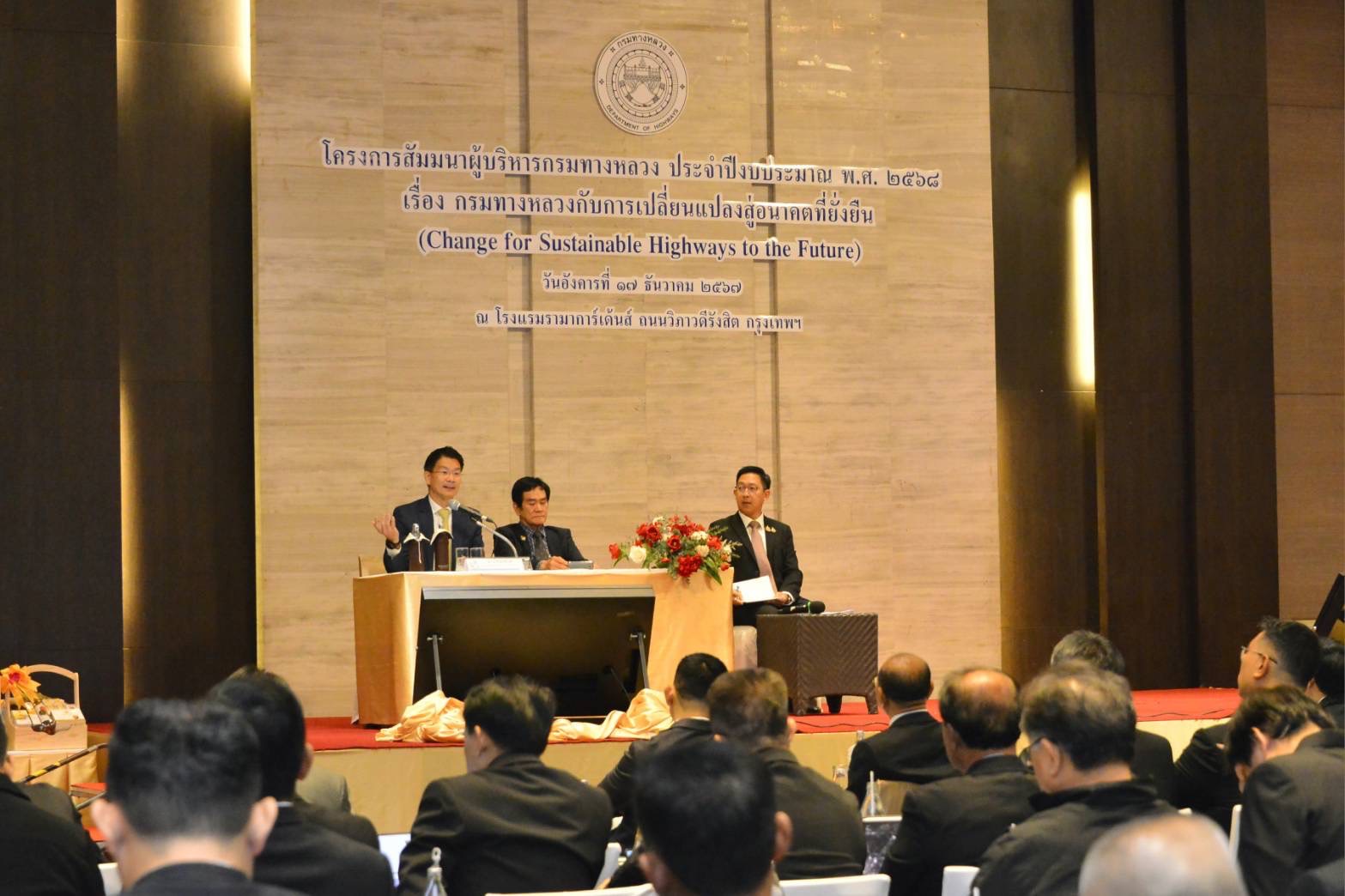 นายอภิรัฐ ไชยวงศ์น้อย อธิบดีกรมทางหลวง ได้กล่าวหลังเปิดโครงการสัมมนาผู้บริหารกรมทางหลวง ประจำปีงบประมาณ พ.ศ. 2568 เรื่อง กรมทางหลวงกับการเปลี่ยนแปลงสู่อนาคตที่ยั่งยืน (Change for Sustainable Highways to the Future) ว่า การสัมมนาในครั้งนี้เป็นการสร้างความเข้าใจเกี่ยวกับนโยบายและ แนวทางการปฏิบัติราชการของกรมทางหลวงประจำปีงบประมาณ พ.ศ. 2568 โดยมีวัตถุประสงค์เพื่อให้ผู้บริหารได้รับทราบนโยบาย ในการขับเคลื่อนนโยบายและเป้าหมายการบริหารงานของกรมทางหลวงในทุกมิติ ด้วยแนวทางปฏิบัติงานเชิงรุกในยุคดิจิทัลได้อย่างมีประสิทธิภาพและเกิดประโยชน์สูงสุด ตอบสนองนโยบายการบริหารราชการแผ่นดินของรัฐบาลได้อย่างมีผลสัมฤทธิ์และเป็นรูปธรรม รวมถึงการได้เพิ่มพูนความรู้ในเรื่องความก้าวหน้าของเทคโนโลยีปัญญาประดิษฐ์ (AI) ในการนําไปใช้ประโยชน์ เพื่อยกระดับขีดความสามารถ สร้างการเปลี่ยนแปลงผลลัพธ์ให้กับองค์กรและความรู้เกี่ยวกับกลยุทธ์เชิงรุกเพื่อพัฒนาภาพลักษณ์องค์กรในยุคดิจิทัล