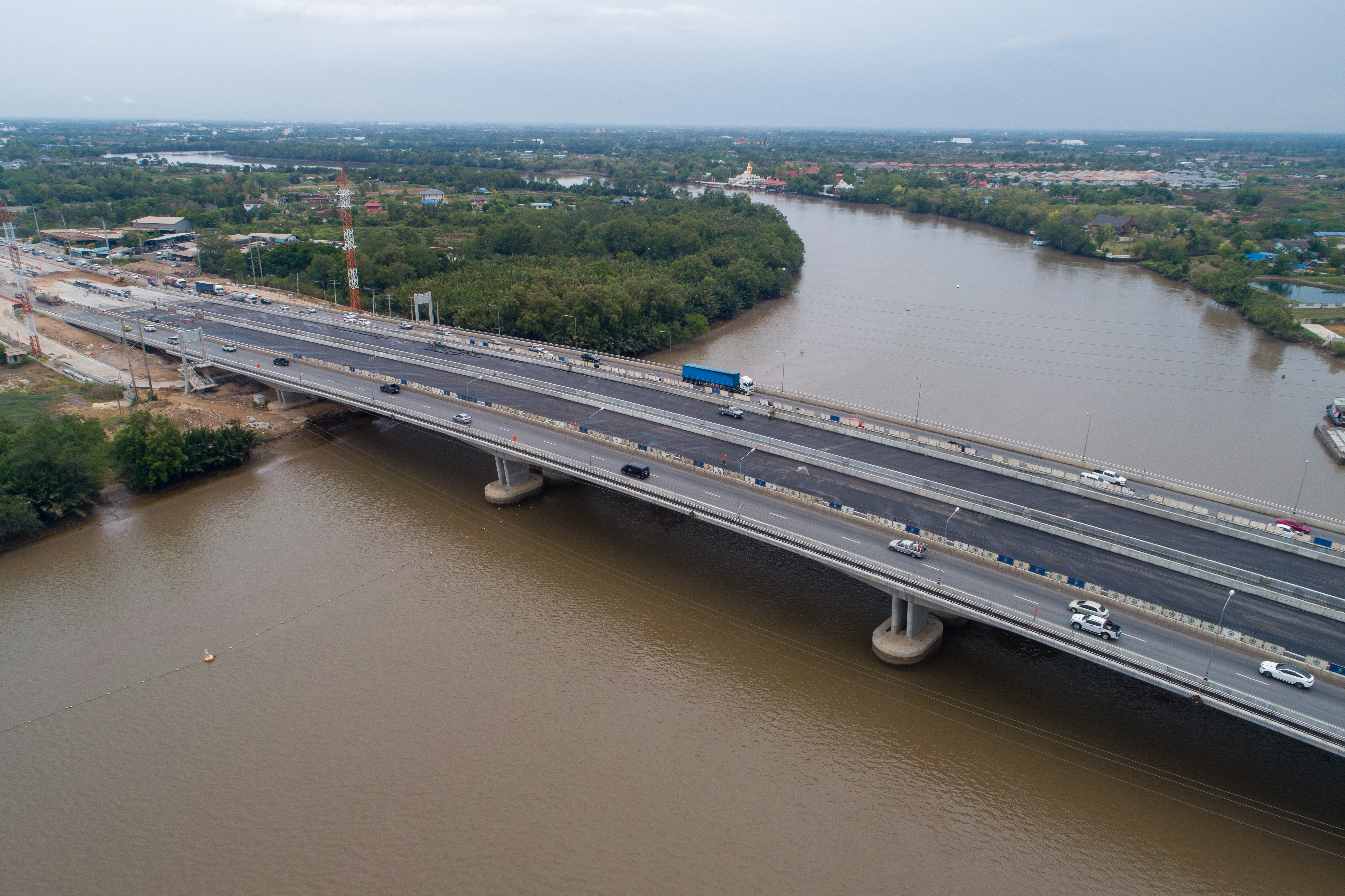 - ก่อสร้างสะพานคอนกรีตอัดแรง ด้านทางหลักขนาด 3 ช่องจราจร ความกว้าง 13.50 เมตร ความยาว 420 เมตร จำนวน 2 แห่ง (ขาไปและขากลับ) ผิวจราจรแอสฟัลท์คอนกรีต