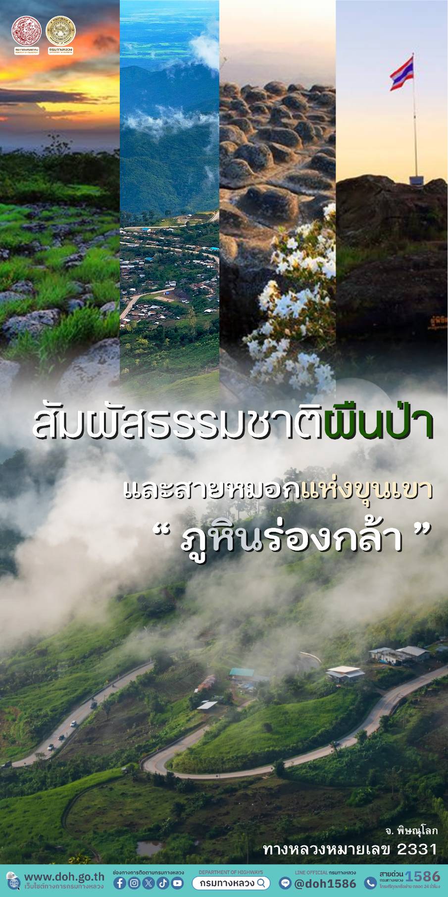 กรมทางหลวงชวนท่องเที่ยวช่วงปลายฝนต้นหนาว ชมทะเลหมอก “อุทยานแห่งชาติภูหินร่องกล้า” จังหวัดเพชรบูรณ์เป็นอีกจุดหมายที่ไม่ควรพลาด ด้วยอากาศที่เย็นสบายพร้อมความงามของทะเลหมอกยามเช้าที่ปกคลุมไปทั่วหุบเขาสวยงามราวภาพวาด