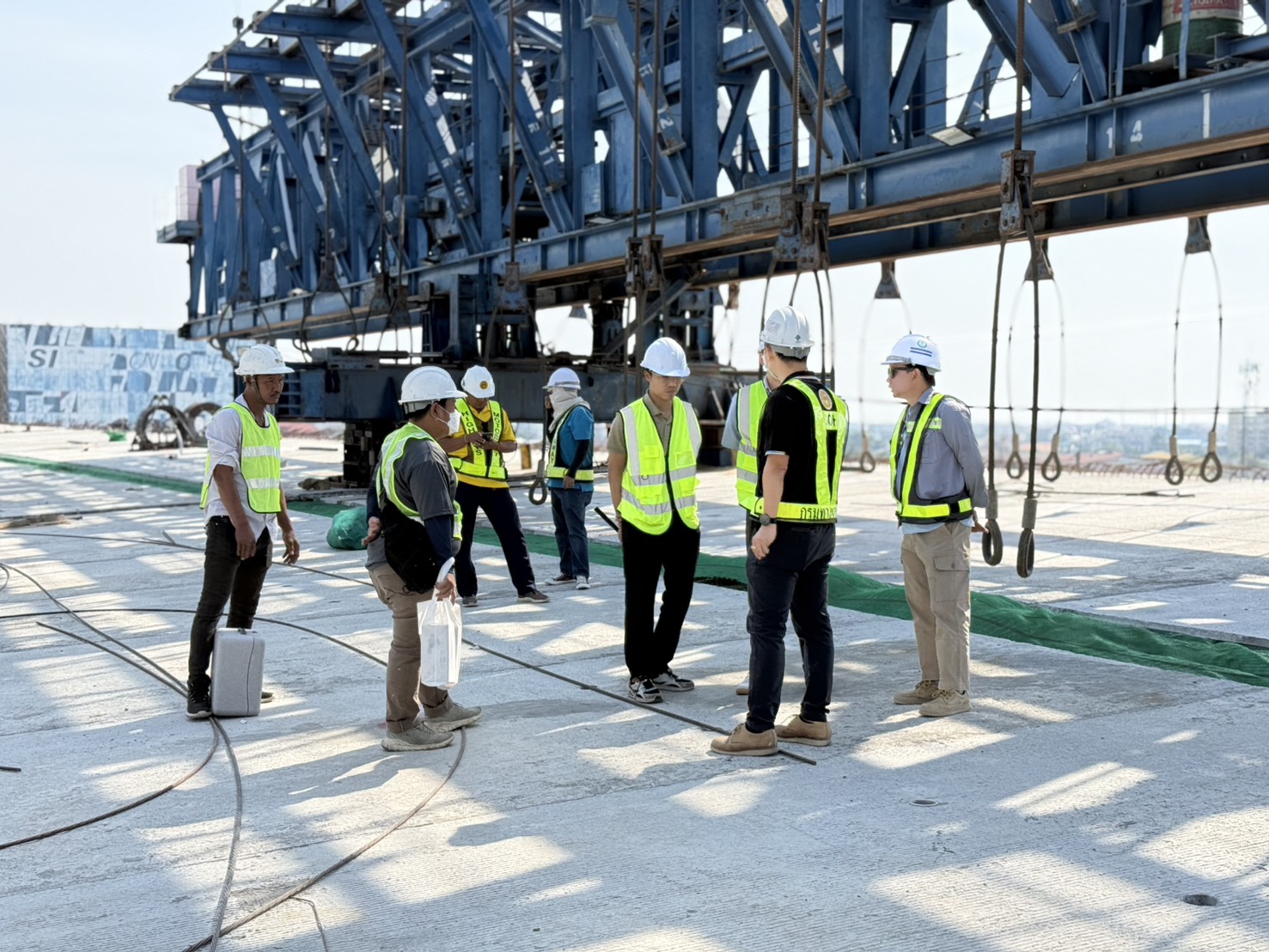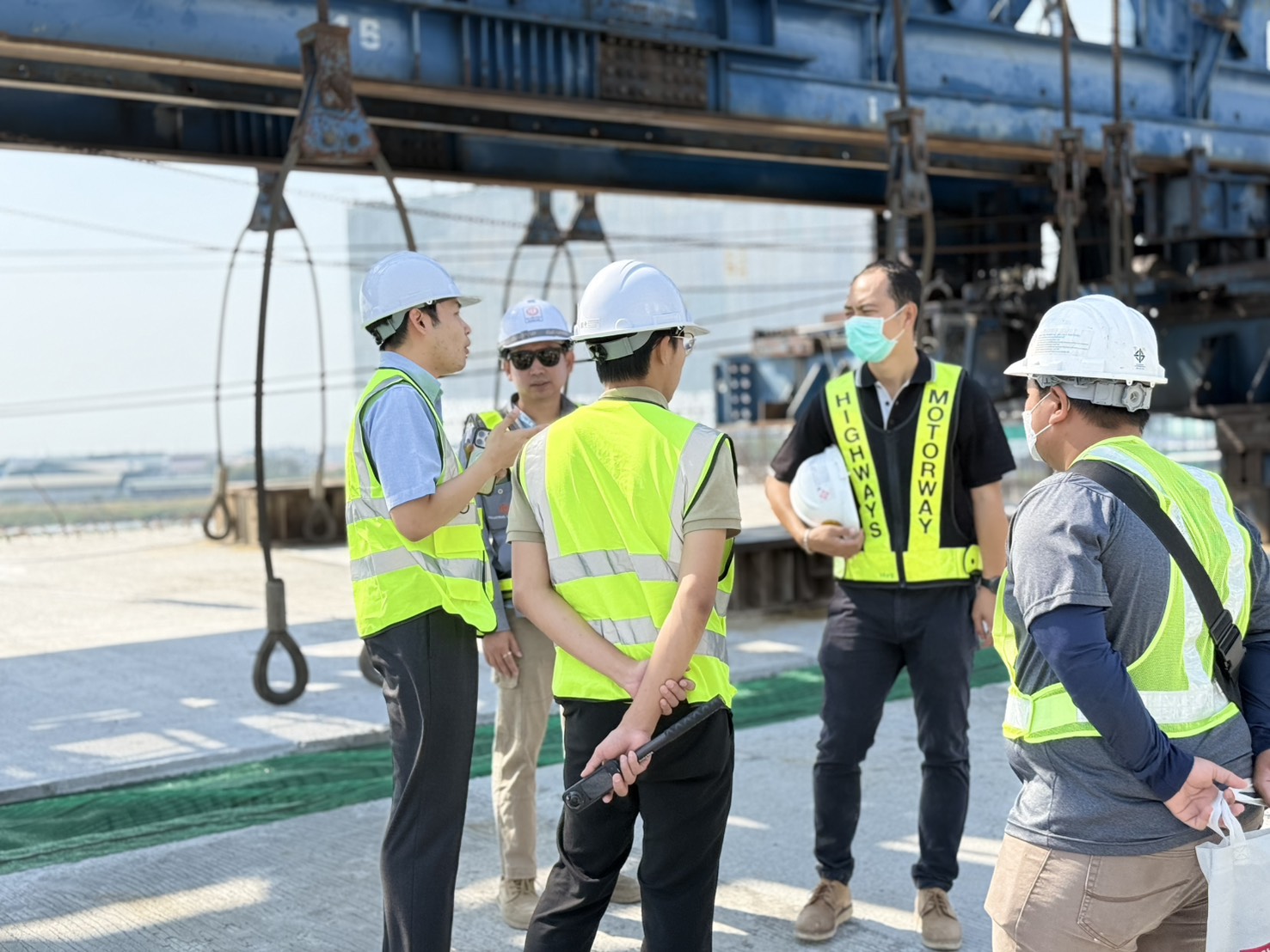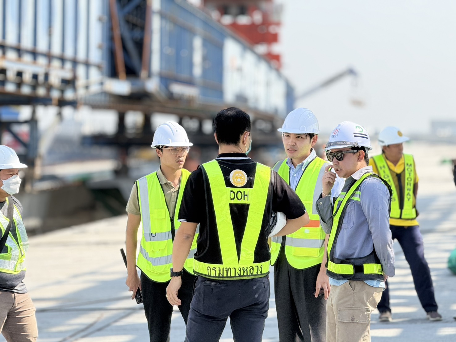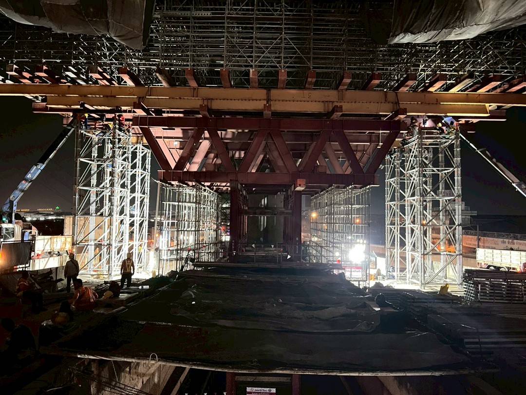 ในส่วนของการเทคอนกรีตเชื่อมต่อโครงสร้างสะพานคานยื่น (Balanced Cantilever) ช่วงข้ามแม่น้ำท่าจีนที่ยังไม่บรรจบกันจำนวน 3 จุด ยังคงเดินหน้าตามแผนภายใต้มาตรการความปลอดภัยอย่างเคร่งครัด เนื่องจากปัจจุบันโครงสร้างสะพานฯ ถูกทิ้งค้างไว้ในรูปแบบ “คานยื่นอิสระ” และใช้นั่งร้านชั่วคราวขนาดใหญ่ทำหน้าที่แบกรับน้ำหนักอยู่ จึงจำเป็นต้องเร่งเทคอนกรีตเชื่อมต่อโครงสร้างสะพานส่วนยื่น (Closure) ให้บรรจบอย่างสมบูรณ์ เพื่อให้การรับน้ำหนักและถ่ายแรงเป็นไปตามการออกแบบด้านวิศวกรรม และสามารถรื้อถอนโครงสร้างนั่งร้านชั่วคราวที่มีความเสี่ยงสูงออกจากพื้นที่ก่อสร้าง และเปิดช่องทางหลักช่วงสะพานข้ามแม่น้ำท่าจีนเพิ่มเติมได้ โดยล่าสุดจนถึง 31 มกราคม 2569 ได้ดำเนินการเทคอนกรีตเชื่อมสะพานและดึงลวดแล้วเสร็จ 1 จุด (ตำแหน่ง M3) สำหรับแผนการดำเนินงานในสัปดาห์หน้า จะเริ่มดำเนินการอีก 2 จุดที่เหลือ (ตำแหน่ง M4 และ M5)
