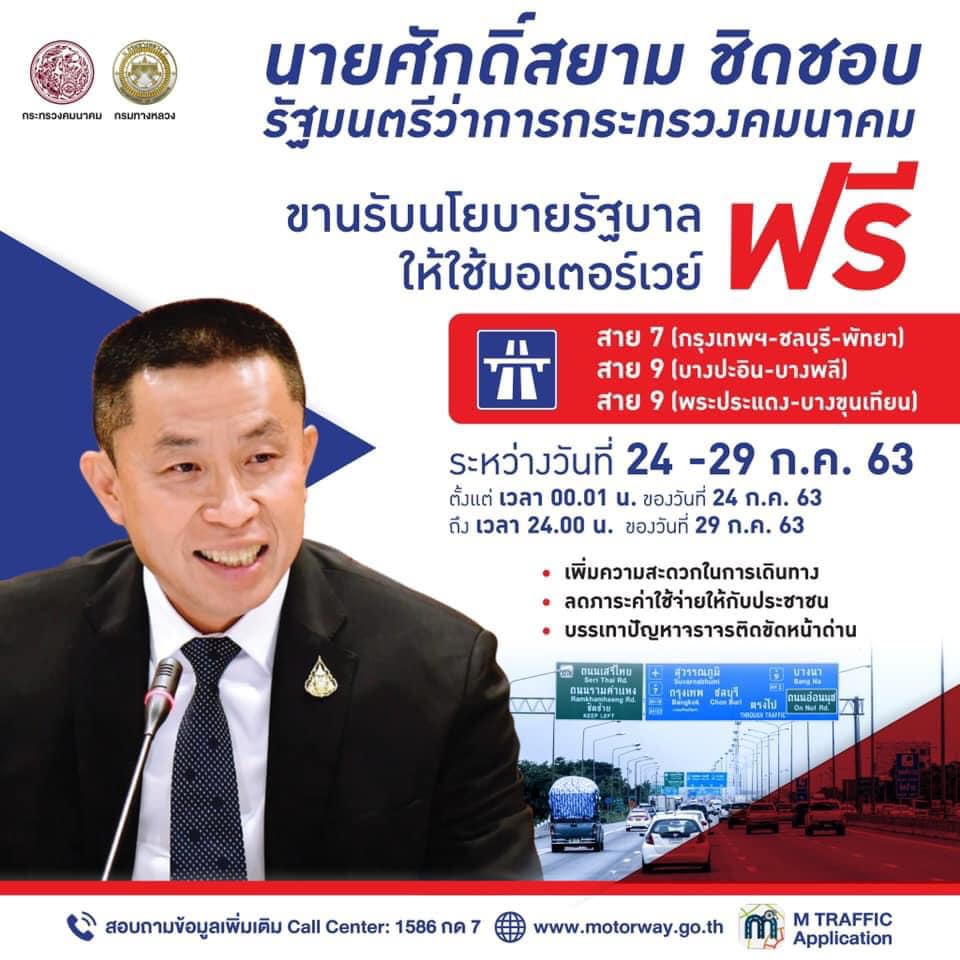 กรมทางหลวง อำนวยความสะดวกและปลอดภัยรองรับการเดินทางในช่วงวันหยุดยาว 25 - 28 ก.ค. 63 พร้อมเปิดฟรีมอเตอร์เวย์ทุกเส้นทางรวม 6 วัน