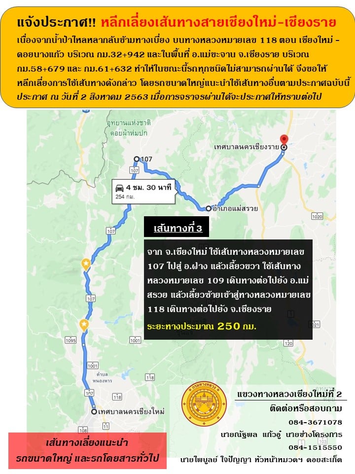 แจ้งประกาศ!! หลีกเลี่ยงเส้นทางสายเชียงใหม่-เชียงราย