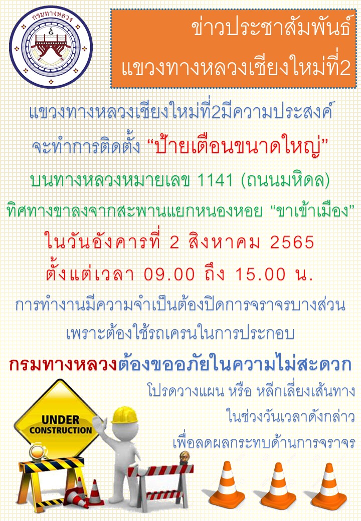 แขวงทางหลวงเชียงใหม่ที่ 2 ดำเนินการติดตั้งป้ายเตือนจุดเสี่ยงทางโค้งอันตราย “ป้ายเตือนขนาดใหญ่”