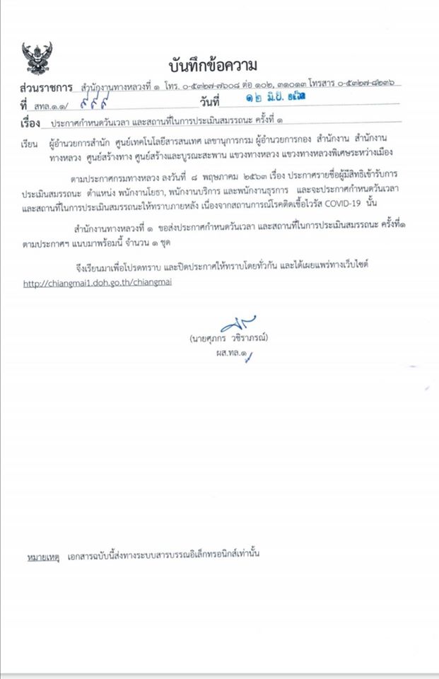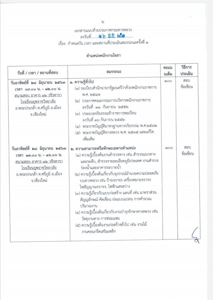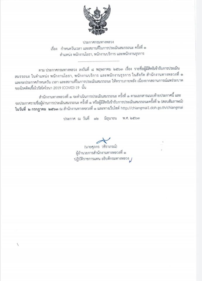 ประกาศกรมทางหลวง เรื่อง กำหนดวันเวลา และสถานที่ในการประเมินสมรรถนะ ครั้งที่ 1
