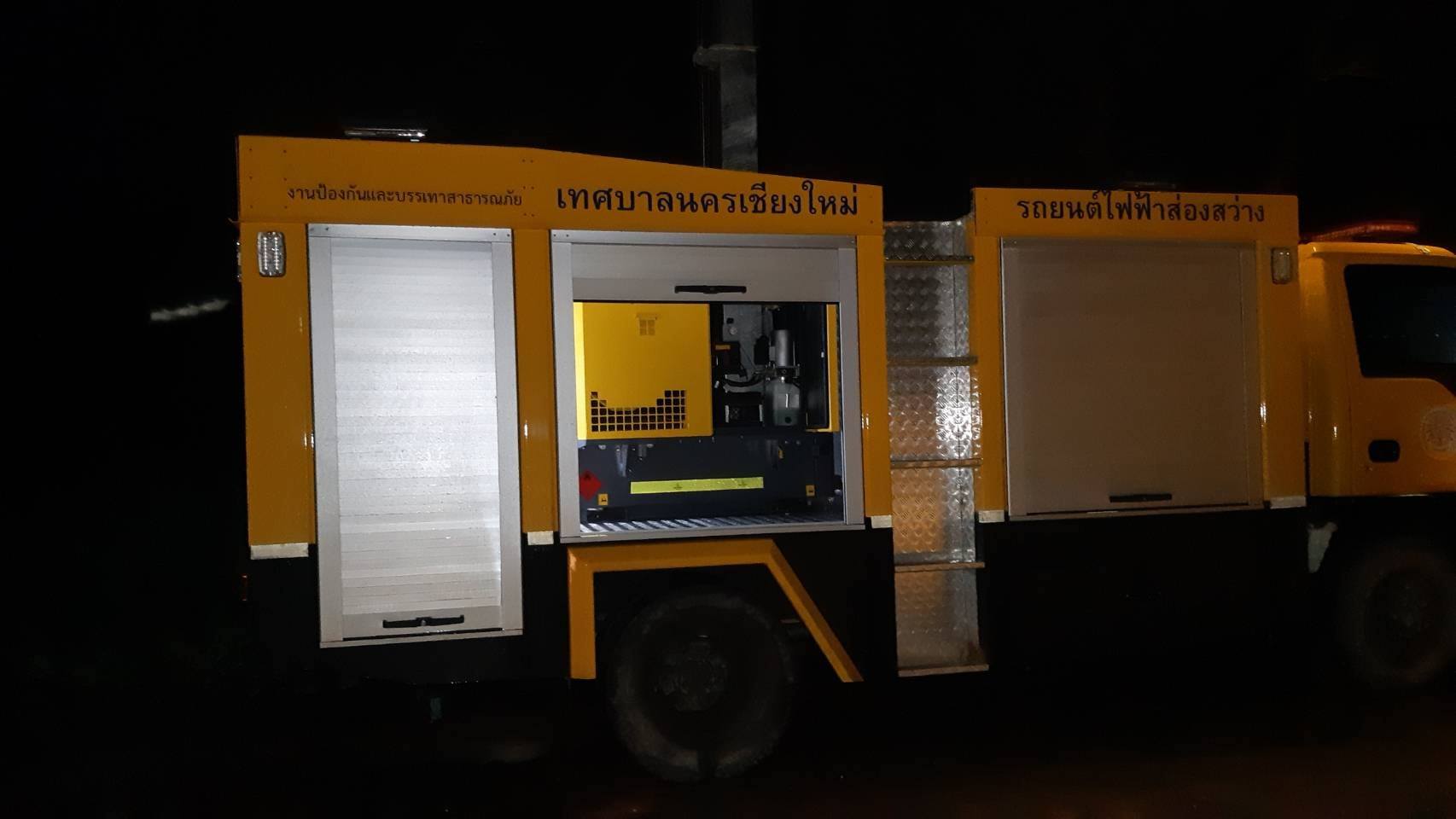แขวงทางหลวงเชียงใหม่ที่ 2 บูรณาการร่วมกับงานป้องกันบรรเทาสาธารณภัย เทศบาลนครเชียงใหม่ สนับสนุนรถไฟฟ้าส่องสว่างเพื่อช่วยเหลือการปฎิบัติงานช่วงกลางคืนในการเร่งสร้างสะพานเบลีย์ เชื่อมถนนสายเชียงใหม่-เชียงราย"