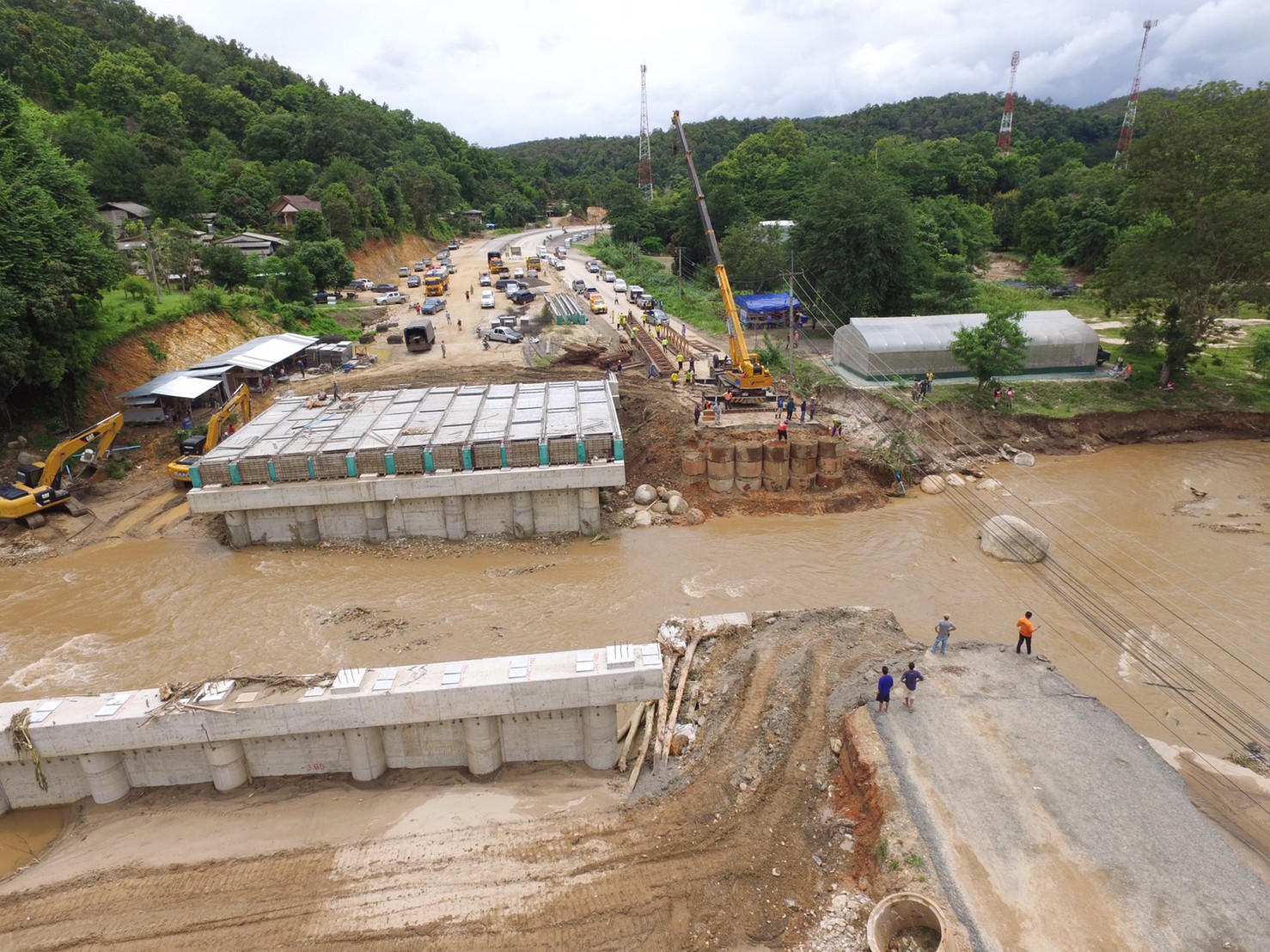 วันนี้ (4 สิงหาคม 2563) นายสราวุธ ทรงศิวิไล อธิบดีกรมทางหลวง พร้อมด้วยนายศุภกร วชิราภรณ์ ผู้อำนวยการสำนักงานทางหลวงที่ 1 (เชียงใหม่ ) และคณะฯ ลงพื้นที่ตรวจเยี่ยมและติดตามสถานการณ์น้ำท่วมจากพายุซินลากู บริเวณทางหลวงหมายเลข 118 ตอนเชียงใหม่ – ดอยนางแก้ว และ ตอนดอยนางแก้ว – แม่สรวย ซึ่งเกิดเหตุการณ์น้ำป่าไหลหลากทำให้ถนนทางเบี่ยงบริเวณพื้นที่ก่อสร้างสะพานขาด ช่วงกม.ที่ 32+260, 32+940 และ 39 ,น้ำล้นทางเบี่ยงโครงการก่อสร้าง ช่วงกม.ที่ 58 และ 61 ตามลำดับ ในการนี้ อธิบดีกรมทางหลวงได้ให้คำแนะนำแนวทางการแก้ไขปัญหาในพื้นที่เกิดเหตุและให้กำลังใจแก่เจ้าหน้าที่ผู้ปฏิบัติงาน