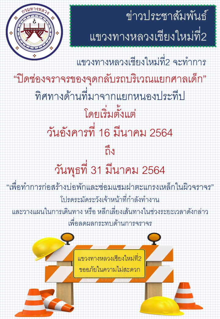 ณ โอกาสนี้ และขอให้ประชาชนใช้เส้นทางอย่างระมัดระวัง หรือหลีกเลี่ยงการใช้เส้นทางในวันดังกล่าว รวมทั้ง ขอความร่วมมือผู้ใช้เส้นทางปฏิบัติตามป้ายเตือน ป้ายแนะนำทางเลี่ยง ป้ายเสริมจากโครงการ และสัญญาณจราจรที่ติดตั้งไว้ เพื่อประโยชน์ต่อการเดินทาง