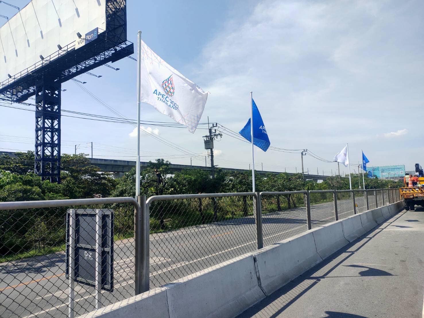 นอกจากนี้ แขวงทางหลวงในพื้นที่ได้ดำเนินการประดับธง APEC ในสายทางที่รับผิดชอบ จำนวน 2,204 ผืน และบนทางยกระดับอุตราภิมุข (ดอนเมืองโทลล์เวย์) จำนวน 88 ผืน พร้อมแสดงข้อความต้อนรับด้วยป้ายปรับเปลี่ยนข้อความ (VMS) จำนวน 46 ป้าย บนทางหลวงพิเศษหมายเลข 7 (กรุงเทพ – มาบตาพุด) และบนทางหลวงพิเศษหมายเลข 9 (บางปะอิน - บางพลี) ซึ่งในช่วงวันหยุดยาวระหว่างวันที่ 16 – 20 พฤศจิกายน 2565 รวม 5 วัน สำนักอำนวยความปลอดภัย กรมทางหลวง คาดการณ์ปริมาณจราจรบนทางหลวงสายหลัก 10 เส้นทาง และบนมอเตอร์เวย์รวมทั้งสิ้นจำนวน 4,932,879 คัน แบ่งเป็นฝั่งขาเข้ากรุงเทพ 2,509,404 คัน และฝั่งขาออกกรุงเทพ 2,423,475 คัน
