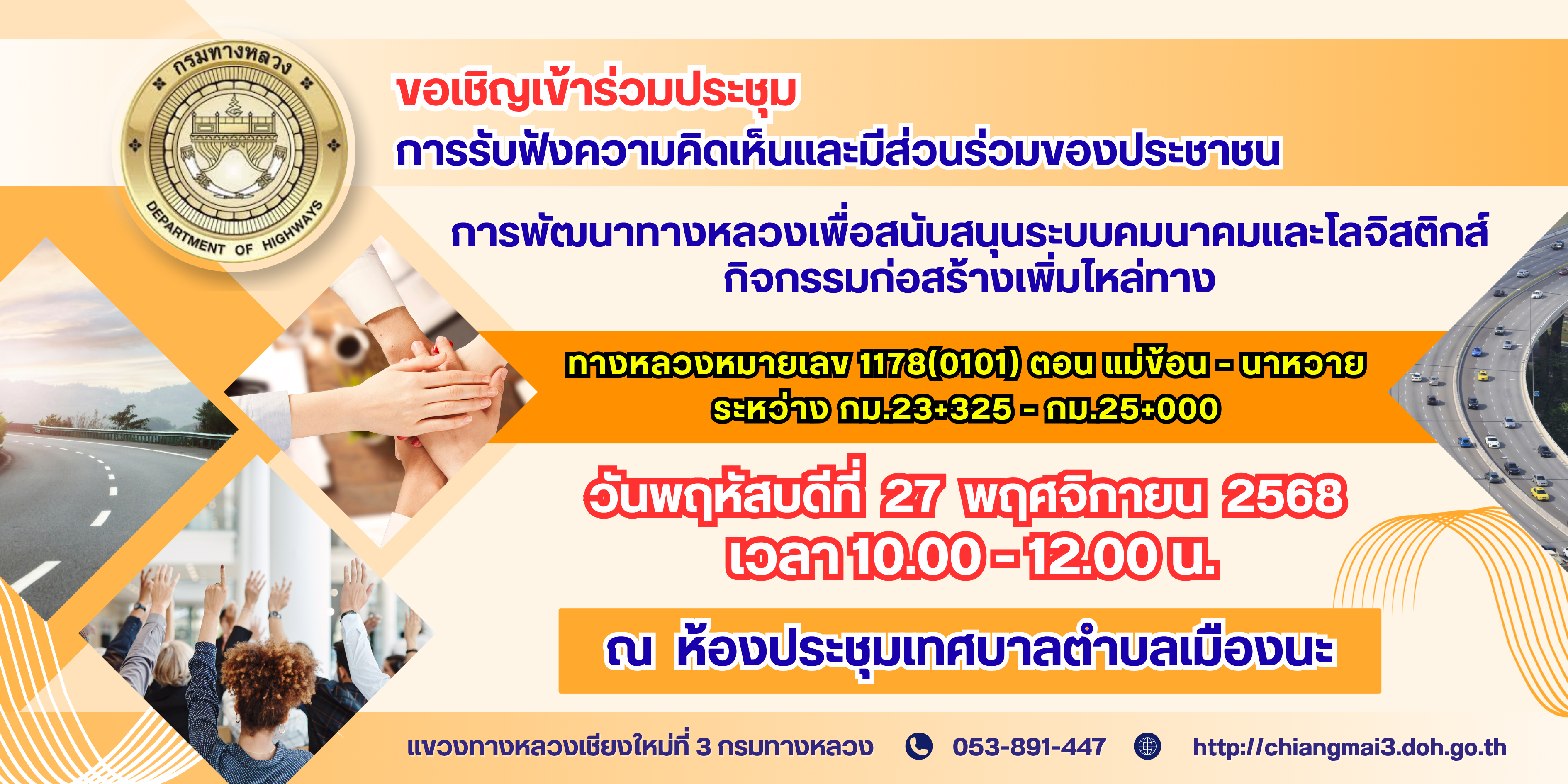 ข่าวประชาสัมพันธ์ โครงการก่อสร้าง ทางหลวงหมายเลข 107 สาย เชียงใหม่-อ.แม่จัน ตอน อ.ฝาง-อ.แม่อาย