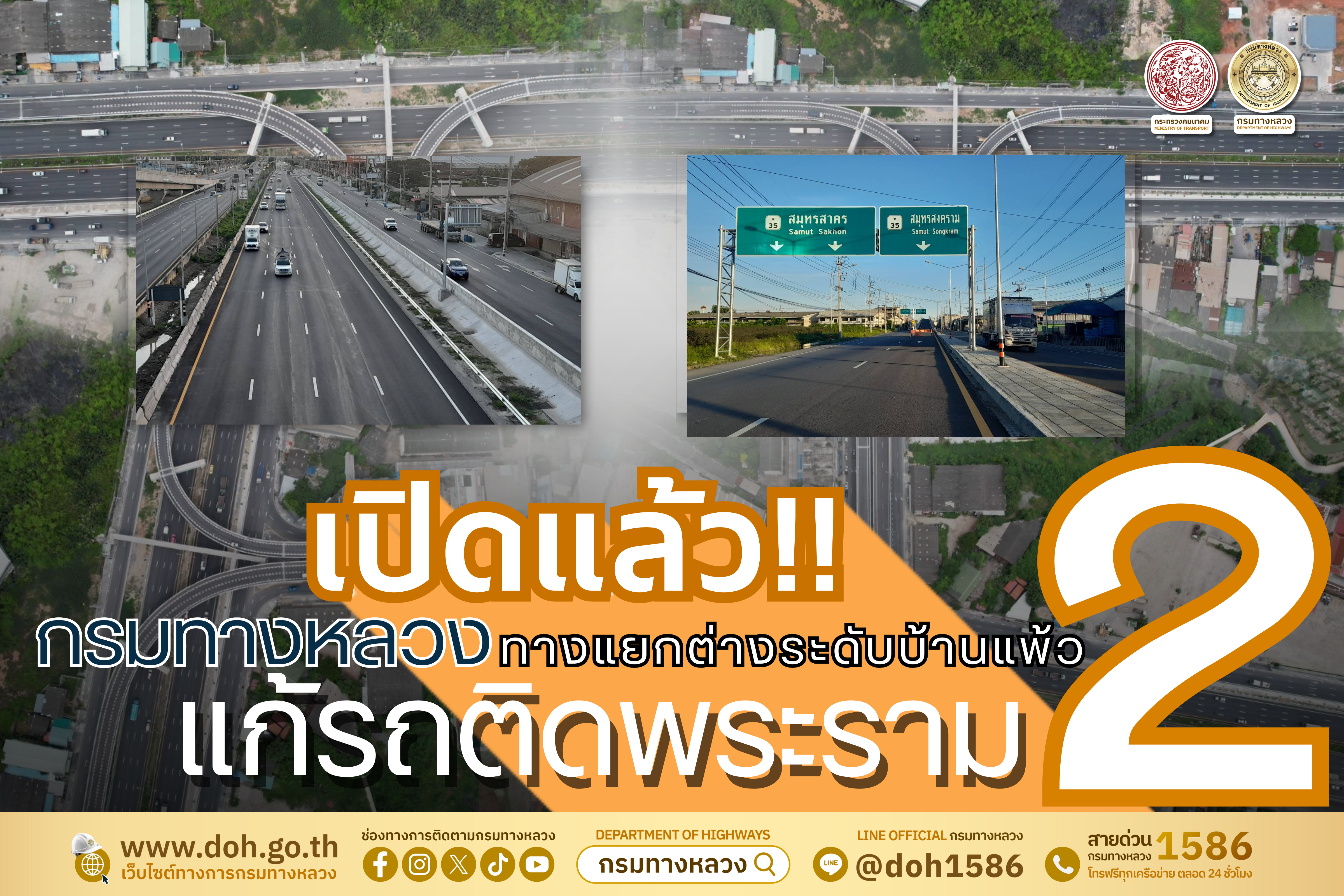 กรมทางหลวงเปิดใช้ทางแยกต่างระดับบ้านแพ้ว จังหวัดสมุทรสาคร แก้ปัญหารถติดแล้ววันนี้! พร้อมเผย "M82 บางขุนเทียน-เอกชัย" สร้างเสร็จแล้ว!