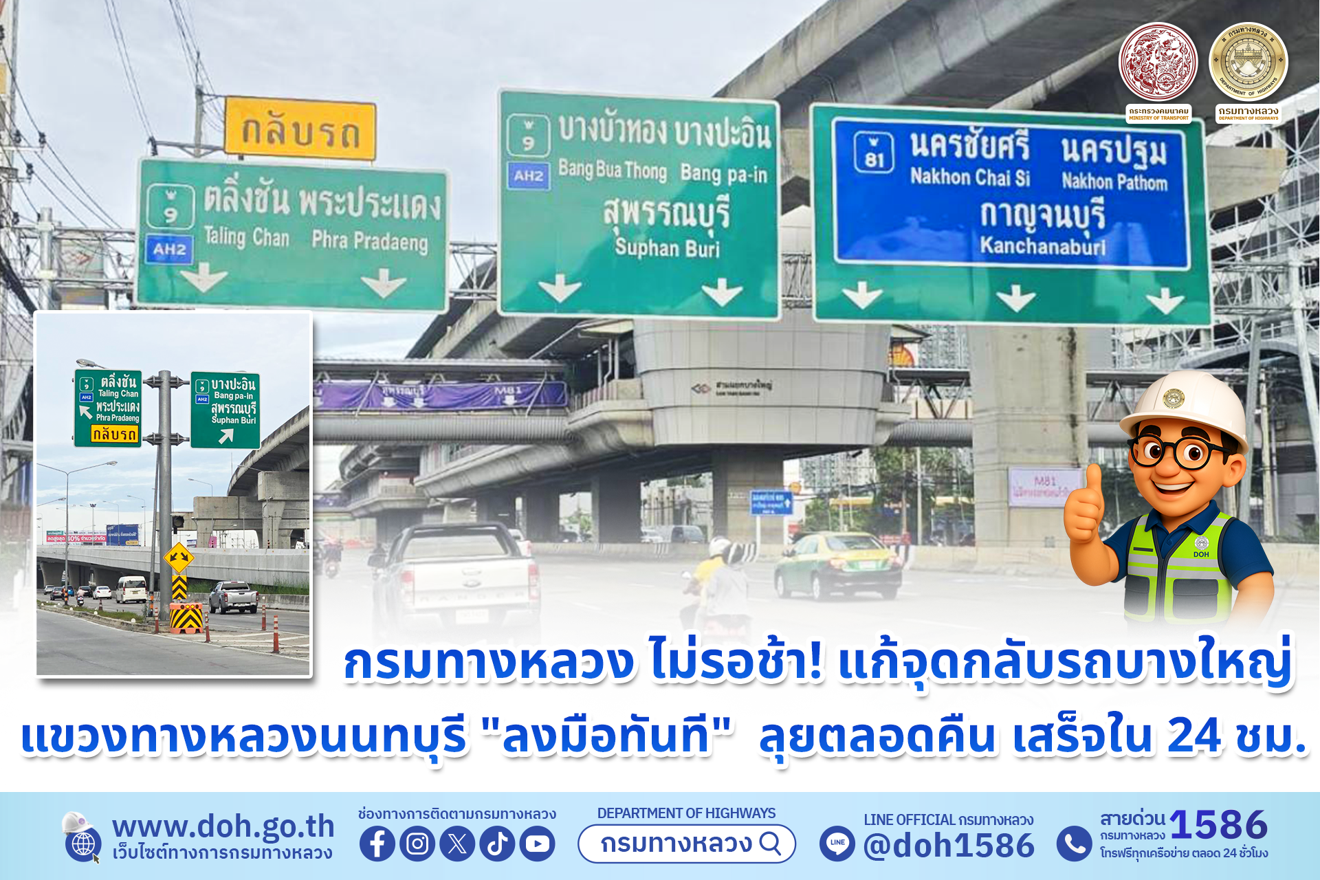 กรมทางหลวงเร่งแก้ปัญหา กรณีผู้ใช้ทางประสบปัญหาแอปพลิเคชันนำทางอย่างไม่ถูกต้องจนเผลอเข้า M81 ! ยืนยันปรับปรุง "ป้ายจราจร - เครื่องหมายจราจรบนถนน" ให้ชัดเจนที่สุด