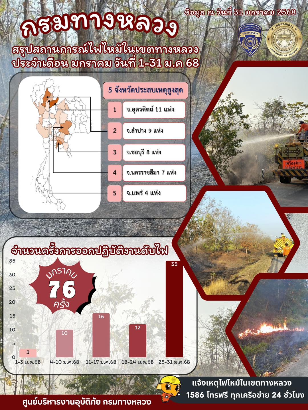 กรมทางหลวงสรุปผลการปฏิบัติการดับไฟไหม้สองข้างทาง