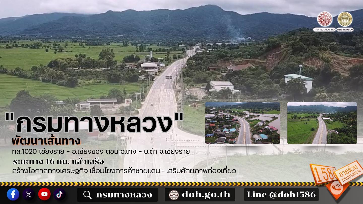 กรมทางหลวงพัฒนาเส้นทาง ทล.1020 เชียงราย - อ.เชียงของ เสร็จสมบูรณ์ ยกระดับคุณภาพชีวิตประชาชน สนับสนุนเศรษฐกิจ-ท่องเที่ยว ภาคเหนือ