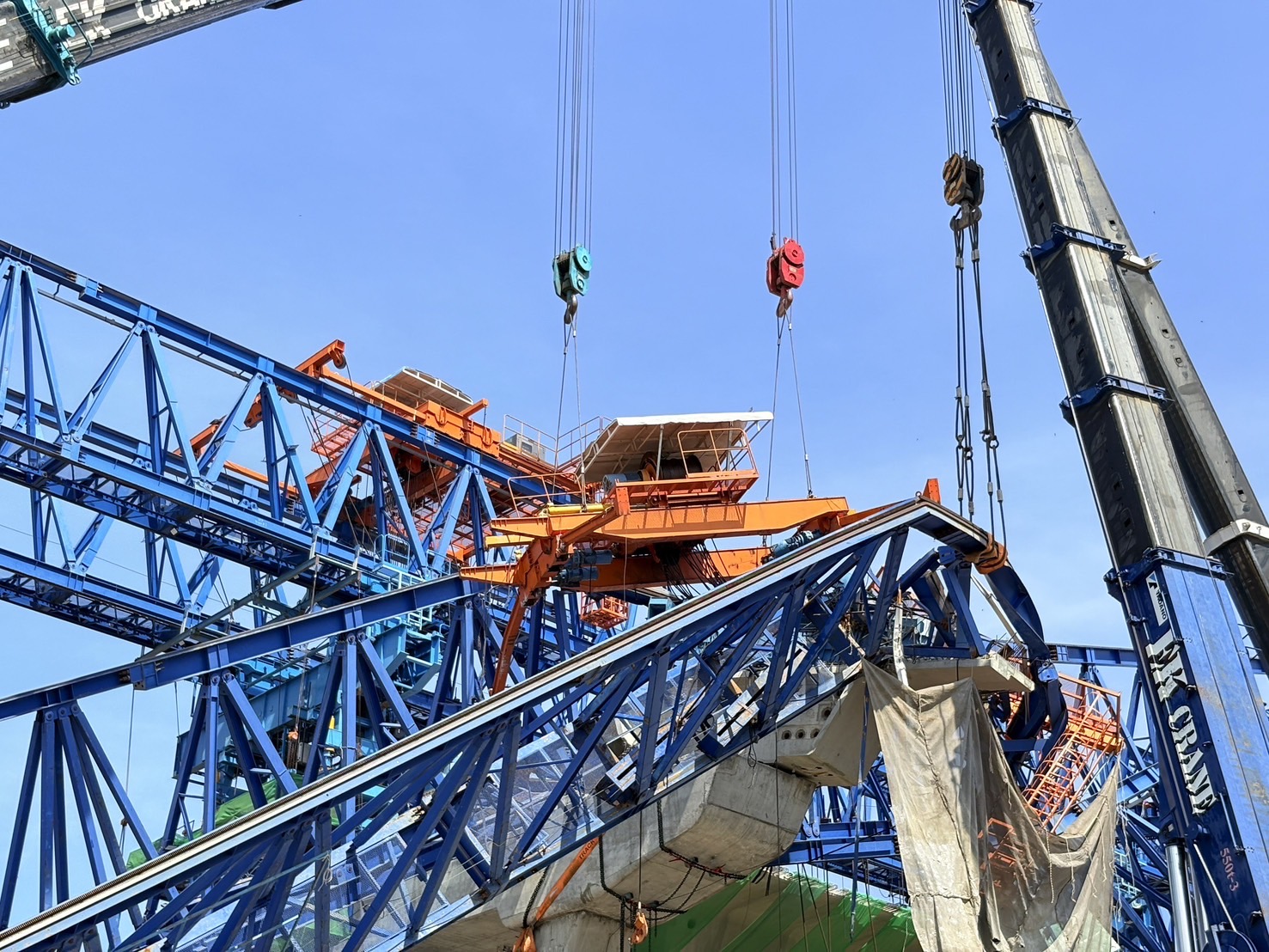 เมื่อวานนี้ (6 ธันวาคม 2567) ทีมวิศวกรได้ดำเนินการตัดชุด Winch ที่ติดกับโครงสร้างเหล็ก เสร็จสิ้นเป็นที่เรียบร้อย โดยดำเนินการตามขั้นตอนอย่างเคร่งครัด ได้แก่ ตัดย่อยอุปกรณ์ที่เกี่ยวข้องกับ Winch เช่น บันไดขึ้น-ลง, สลิง, แกะตู้ Control ออกจาก Winch ลงด้านล่าง, ตัดตะแกรงกันตกชิ้นแรก, ยกชุดรอก Winch ลงมาจากโครงเหล็ก, นำโครงเหล็กชุด Winch ออกจากพื้นที่ และตัดลวดสลิงที่กีดขวางโครงสร้างเหล็ก Truss ออก เพื่อเตรียมความพร้อมสำหรับการรื้อถอนโครงสร้างเหล็ก Truss ที่ได้รับความเสียหายในวันนี้ (7 ธันวาคม 2567) โดยเริ่มจากด้านหลังและยกลงมาด้านล่างล่าสุดเมื่อเวลา 10.00 น. ดร.อรรถสิทธิ์ ศิริสนธิ ที่ปรึกษาคณะอนุกรรมการสาขาวิศวกรรมโครงสร้างและสะพาน วิศวกรรมสถานแห่งประเทศไทย ในพระบรมราชูปถัมภ์ (วสท.) พร้อมด้วยทีมวิศวกรผู้เชี่ยวชาญ ได้ลงพื้นที่ตรวจสอบความพร้อมก่อนการรื้อย้าย Launching Gantry (LG) โดยมีการดำเนินการ ดังนี้