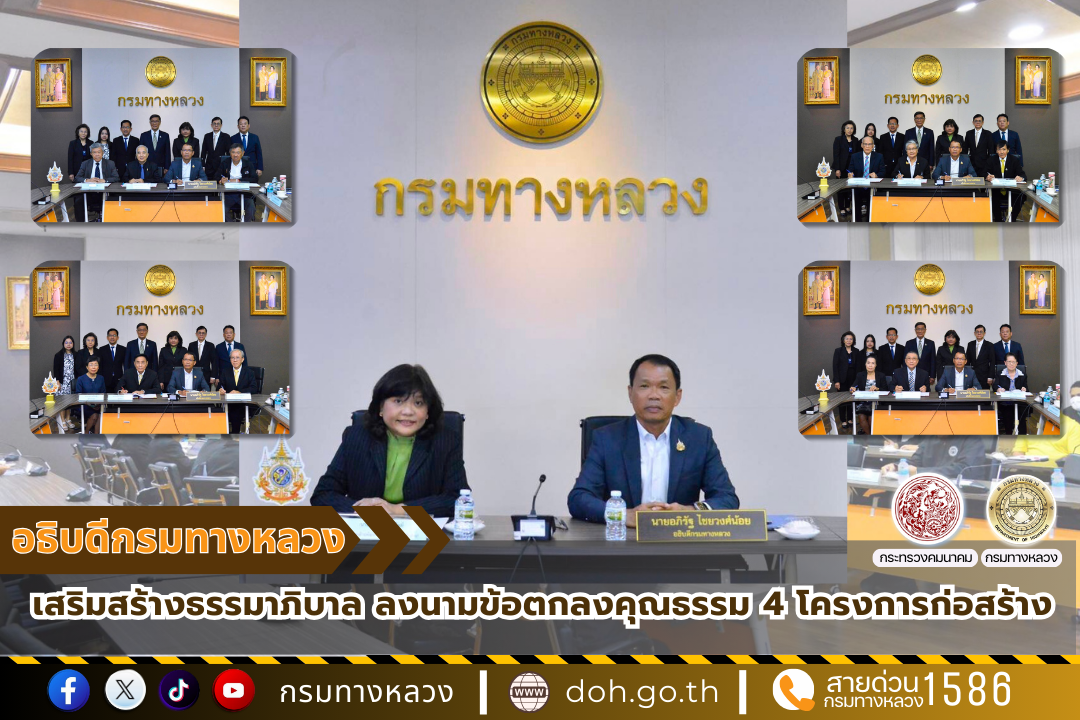 กรมทางหลวง กระทรวงคมนาคม เดินหน้าเสริมสร้างธรรมาภิบาลในการจัดซื้อจัดจ้างภาครัฐ โดยนายอภิรัฐ ไชยวงศ์น้อย อธิบดีกรมทางหลวง เป็นประธานในพิธีลงนามข้อตกลงคุณธรรม (Integrity Pact : IP) ร่วมกับ นางภัทรพร วรทรัพย์ ที่ปรึกษาด้านพัฒนาระบบฯ กรมบัญชีกลาง, โดยมี ผู้บริหารกรมทางหลวง ผู้สังเกตการณ์จากองค์กรต่อต้านคอร์รัปชัน (ประเทศไทย), และเจ้าหน้าที่ที่เกี่ยวข้องเข้าร่วม ณ ห้องประชุมมนัส คอวนิช กรมทางหลวง พิธีลงนามฯ ครั้งนี้ จัดขึ้นเพื่อเสริมสร้างความร่วมมือในการป้องกันการทุจริต ส่งเสริมให้การจัดซื้อจัดจ้างเป็นไปอย่างโปร่งใส ตรวจสอบได้ และคุ้มค่า สอดคล้องกับพระราชบัญญัติการจัดซื้อจัดจ้างและการบริหารพัสดุภาครัฐ พ.ศ. 2560