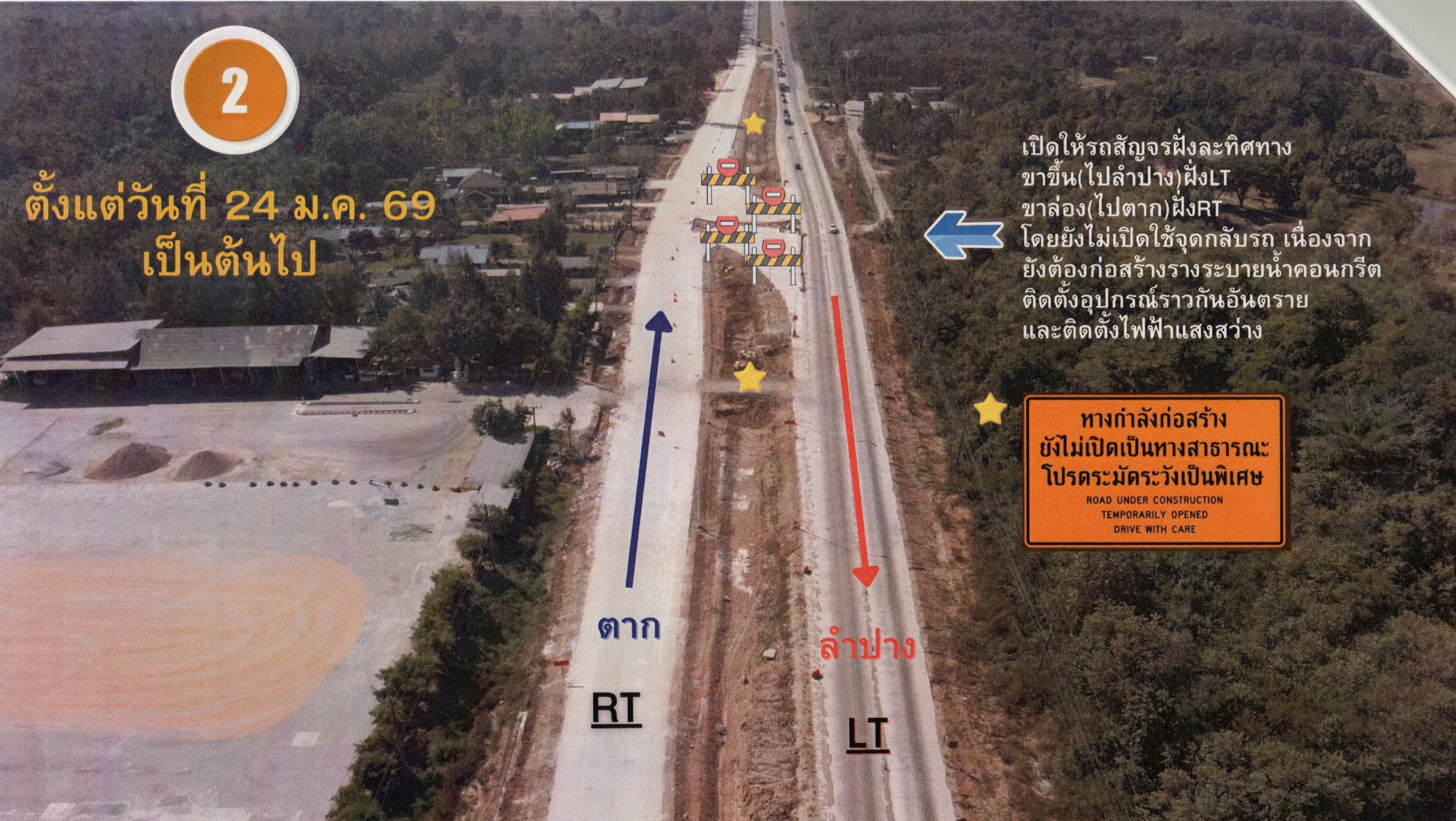 (ปิดจุดกลับรถชั่วคราว) บริเวณฯ หน้าหมวดทางหลวงห้างฉัตร กม.๔๘๒+๓๐๐ (ด้าน RT. ขวาทาง)