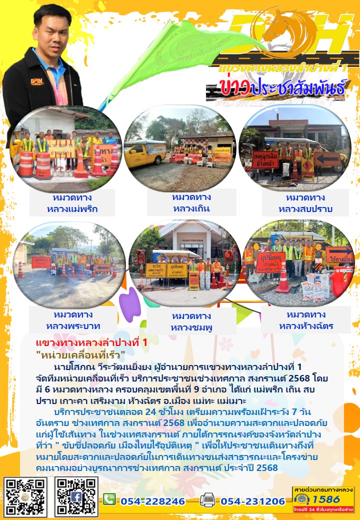 41 29/12/2567 ลงพื้นที่ตรวจเยี่ยมให้กำลังใจเจ้าหน้าที่ ณ จุดบริการ เพื่ออำนวยความสะดวกและความปลอดภัยให้ประชาชนในช่วงปีใหม่ 2568 พร้อมมอบน้ำดื่ม อาหารสำเร็จรูป และเครื่องดื่มให้เจ้าหน้าที่ ??พื้นที่แขวงทางหลวงลำพูนและแขวงทางหลวงลำปางที่ 1!