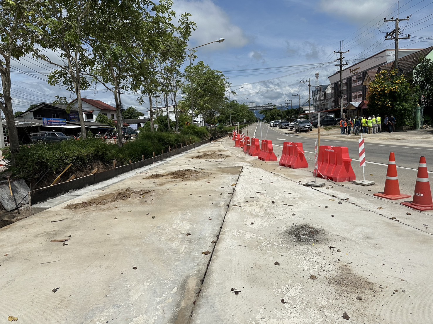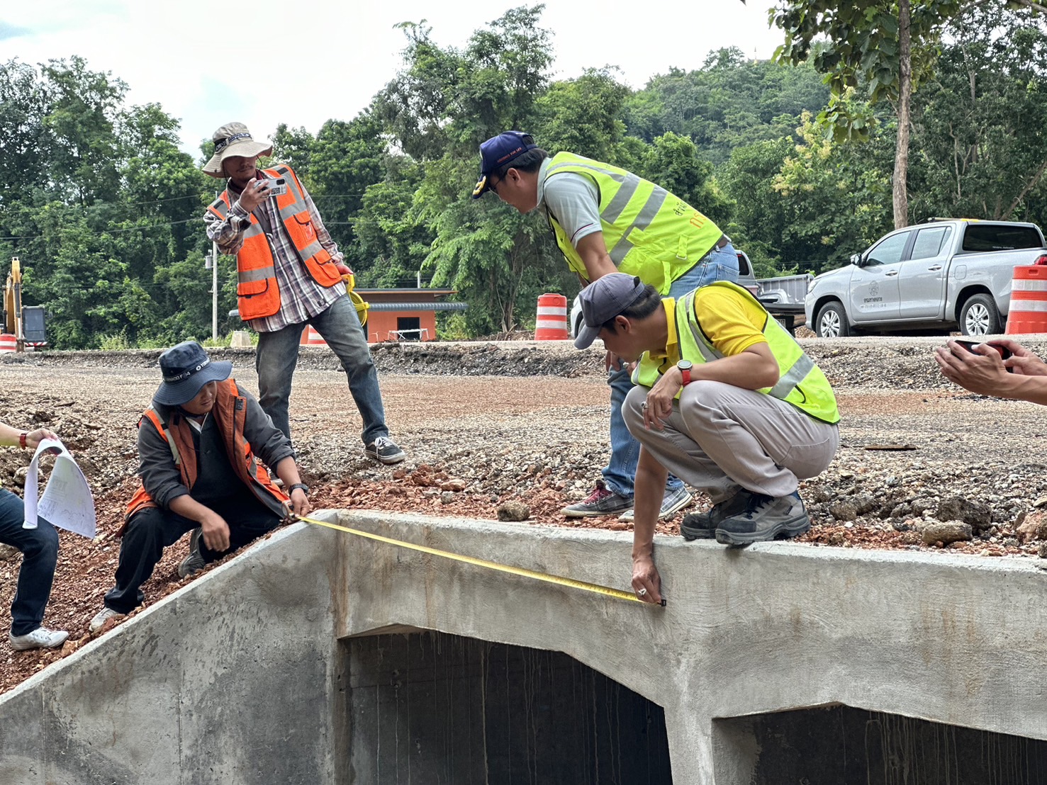 ตรวจติดตามการก่อสร้างตามแผนรายประมาณการกิจกรรมบำรุง รักษาทางหลวง ประจำปี 2567 งานแก้ไขและป้องกันน้ำท่วมทาง ทล.1 ตอน เกาะคา – สามัคคี ตอน 3