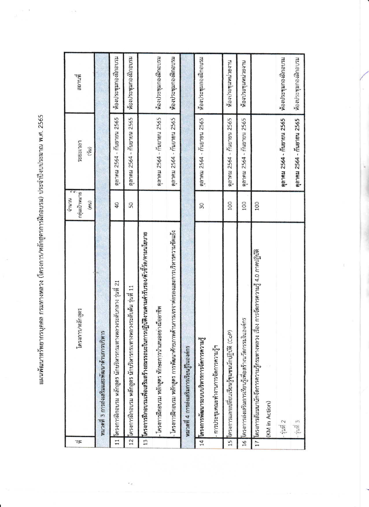 แผนพัฒนาทรัพยากรบุคคล กรมทางหลวง (โครงการ/หลักสูตรการฝึกอบรม) ประจำปีงบประมาณ พ.ศ. 2565