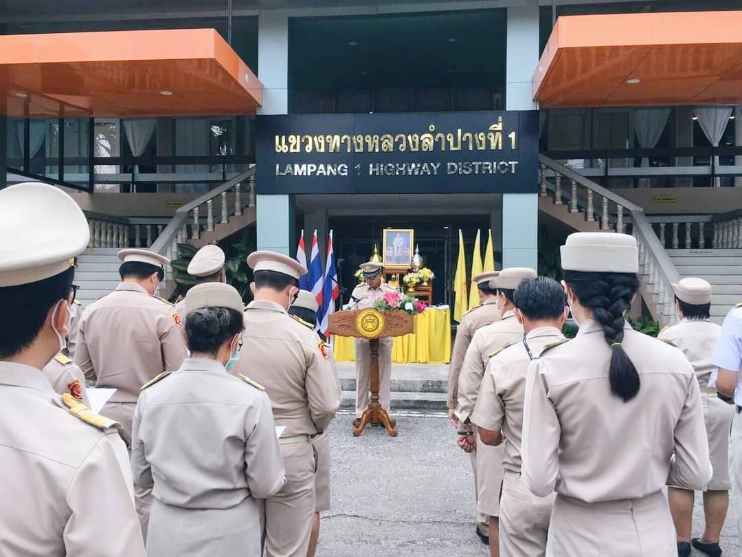 นายรัฐพงษ์ เลิศสุวรรณไพศาล ผู้อำนวยการแขวงทางหลวงลำปางที่ 1 นำข้าราชการ ลูกจ้างประจำ พนักงานราชการ และลูกจ้างในสังกัด ร่วมพิธีถวายสัตย์ปฏิญาณเพื่อเป็นข้าราชการที่ดีและพลังของแผ่นดิน ประจำปี 2565