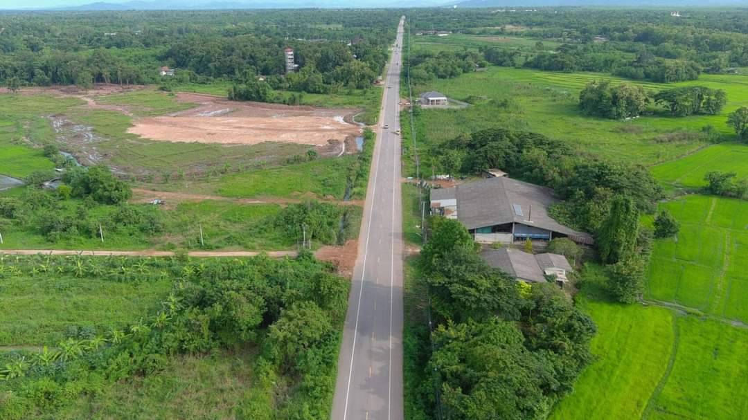 ภาพถ่ายทางอากาศสถานการณ์หลังน้ำท่วม บริเวณทางหลวงหมายเลข 1036 ตอน บ้านฟ่อน - ศูนย์สร้างทางลำปาง ระหว่าง กม.2+050 - กม.2+100